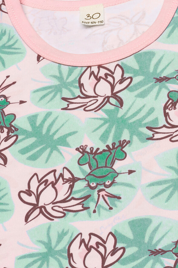 На рост 118, размер 116-122 оказался слишком коротким, то есть если руки поднять сильно, поднимается платье, окрас в живую больше пижаму напоминает.