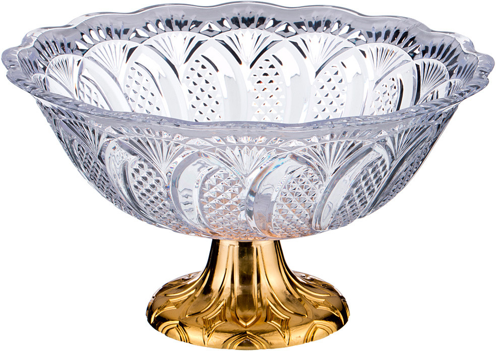 Фруктовница на ножке отлично подойдет для сервировки праздничного стола. Помимо фруктов, ее также можно использовать для подачи закусок и различных сладостей: конфет, пирожных, круассанов, печенья и т.д. Фруктовница имеет форму чаши, выполнена из пластика и украшена оригинальным узором.