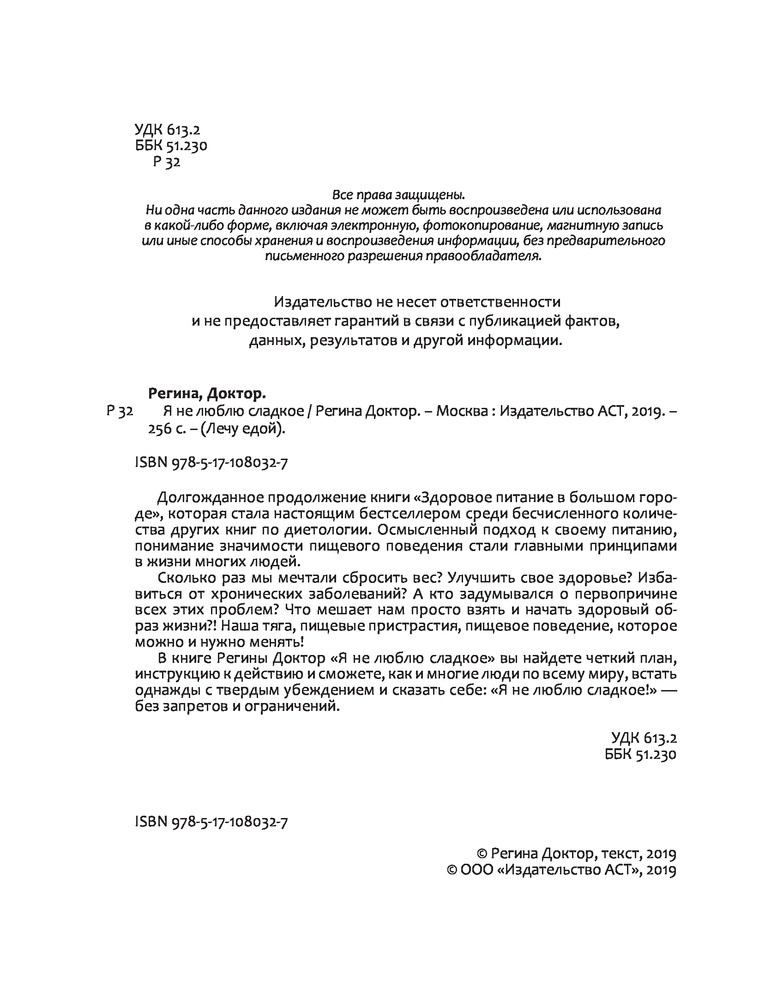 Книги не нравится только завистникам или тем, кто не может справиться со своей зависимостью от сладкого. Книга лёгкая к пониманию, отчего ее незаслуженно называют примитивной. Регина грамотно рассказывает о самом важном, ее книги настольное пособие для разумных людей. Побольше бы таких настоящих врачей!