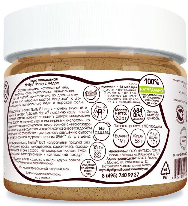 Отзывы «Паста-крем миндальная Natty’s «Honey»»