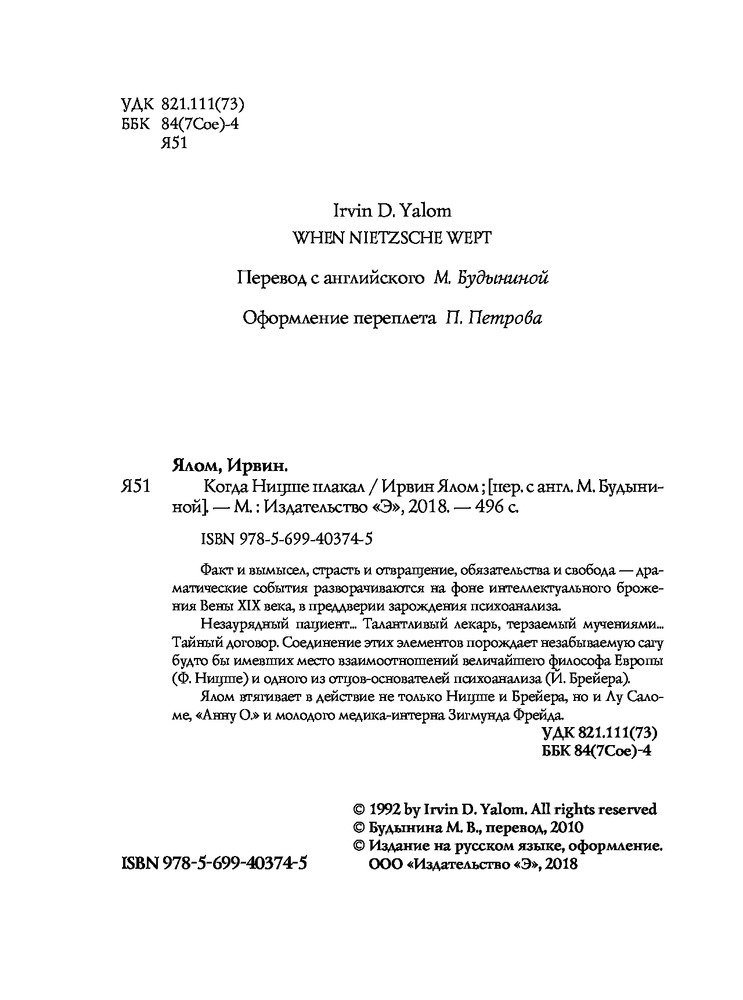 | Когда Ницше плакал Ирвин Ялом