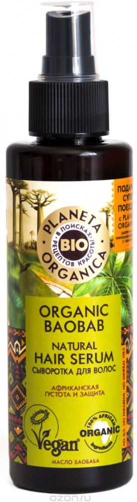 Сыворотка для волос Organic Baobab создана специально для густоты, укрепления и защиты волос от термовоздействий.