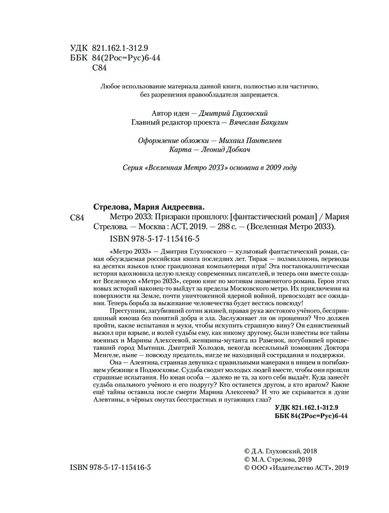 Метро 2033. Призраки прошлогоВ данный момент этот товар отсутствует в продаже. Возможно, у нас найдется аналогичный или похожий товар здесь. Серия: Вселенная Метро 2033 «Метро 2033» Дмитрия Глуховского — культовый фантастический роман, самая обсуждаемая российская книга последних лет. Тираж — полмиллиона, переводы на десятки языков плюс грандиозная компьютерная игра! Эта постапокалиптическая история вдохновила целую плеяду современных писателей, и теперь они вместе создают «Вселенную Метро 2033», серию книг по мотивам знаменитого романа. Герои этих новых историй наконец-то выйдут за пределы Московского метро. Их приключения на поверхности Земли, почти уничтоженной ядерной войной, превосходят все ожидания. Теперь борьба за выживание человечества будет вестись повсюду! |