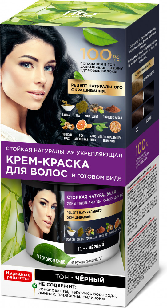 Народные рецепты Крем-краска для волос, оттенок Черный