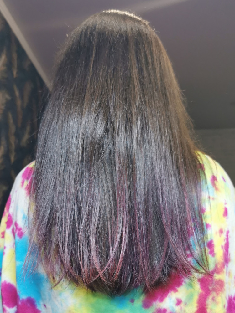 Кончики многократно осветленные, окрашенные пигментом прямого действия, и все это сверху закрашено бытовой краской. После масла гораздо приятнее на ощупь, блестят и не путаются, в зимнее время помогает от электризации