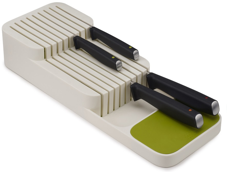Отличный органайзер. Сложила в него 13 острых, режущих предметов. Не только ножи. Осталось место найти , для органайзера. Не знаю почему, при заказе не обратила внимания на размеры. Хотела его в ящик пристроить, теперь по размерам не проходит. Неудобное расположение, не рациональное использование пространства ящика. Сам органайзер удобный и хранение острых предметов более безопасное.