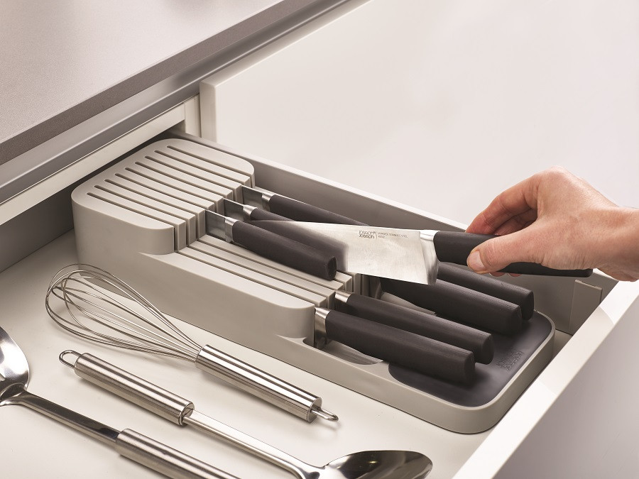 Органайзер очень удобный. Идеально вписывается в выдвижной шкаф, 2 уровня экономят место, ножи всегда лежат аккуратно, не тупятся и все под рукой.
