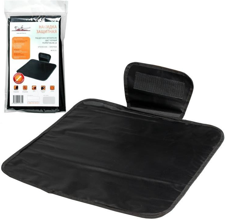 Накидка защитная под детское автокресло изготовлена из прочного, легко моющегося полиэстера, который великолепно защищает тканевую или кожаную обивку сидений от деформации (замятия) и различного рода загрязнений. Накидка легко крепится за счет специального язычка, который прилепляется к ворсу с тыльной стороны спинки сиденья при помощи липучки. Накидка поможет сохранить ваш салон в чистоте.