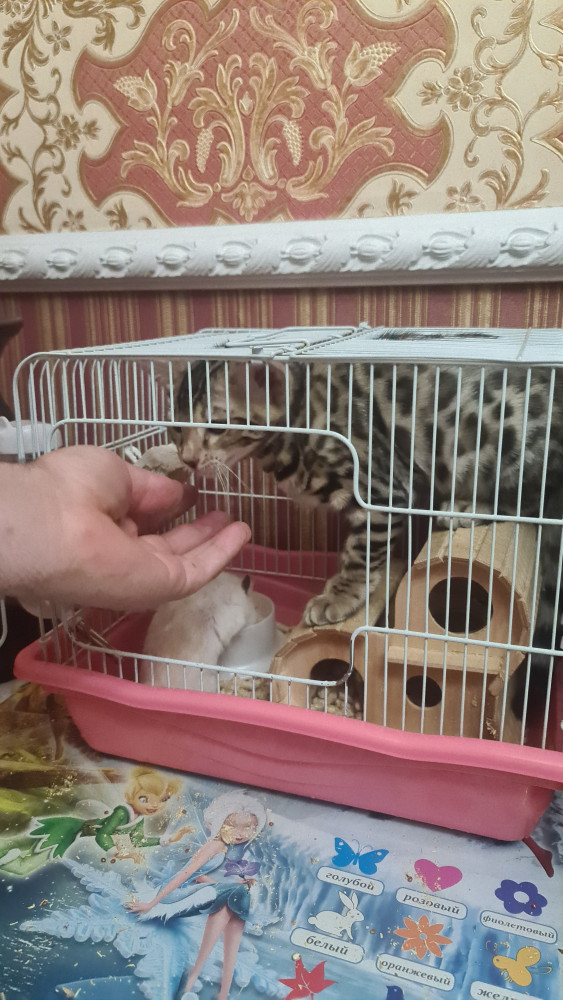 Очень хороший домик для сирийского хомяка. Он уже во все окошки полазил, видно понравился, но для такого домика нужна большая клетка, у меня 58х30х22 см.