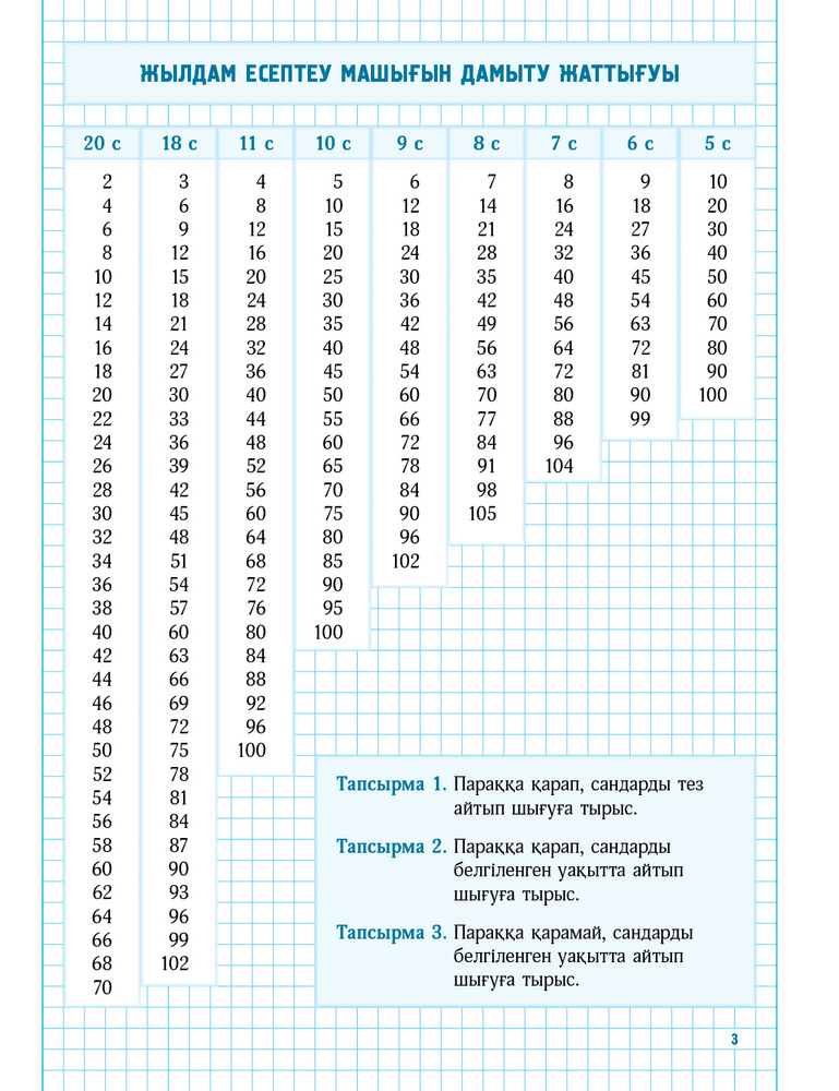 💳 Оплатить за товар можно при получении 🇰🇿 Есть бесплатная доставка по Казахстану от 1 дня 🎁 Копите бонусы с каждой покупки Бұл дәптер 2–4 сынып оқушыларының есептеу машықтарын дамытуға және қалыптастыруға арналған оқу-жаттығу тапсырмалары бар жинақ. Сонымен қатар, бұл құрал 5–6 сынып оқушыларының жылдам санау дағдысын дамытуға қолдануға болады. Математиканы үйрену барысында оқушыларда қиыншылықтар болмауы үшін, осы дағдылар автоматизмге дейін жеткізілуі керек. Әрбір сабақ 10 минуттан кем жүргізілмеуі тиіс. Тапсырмалар қарындашпен орындалады. Егер оқушы тиісті уақытта үлгермесе немесе қателіктер жіберсе, жауаптары өшіріледі және тапсырмалар қайтадан орындалады. |