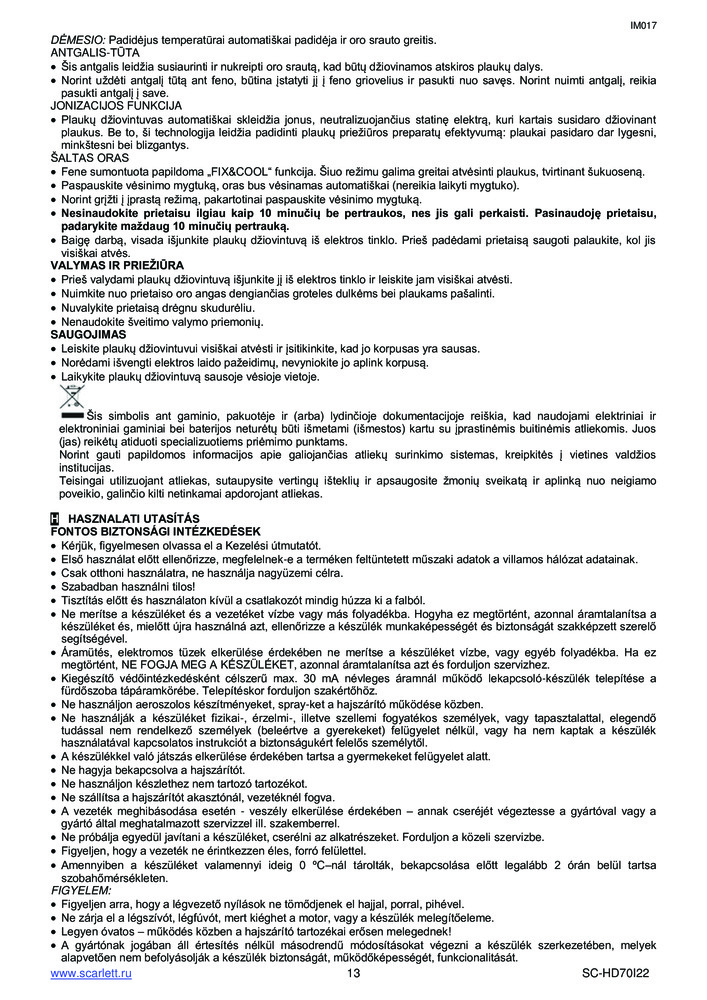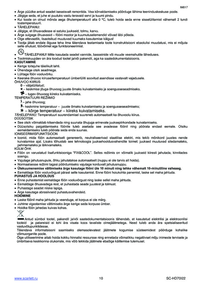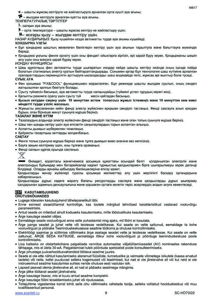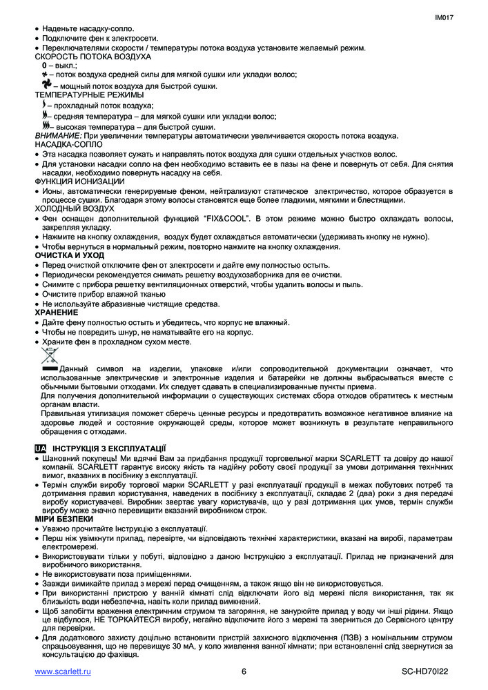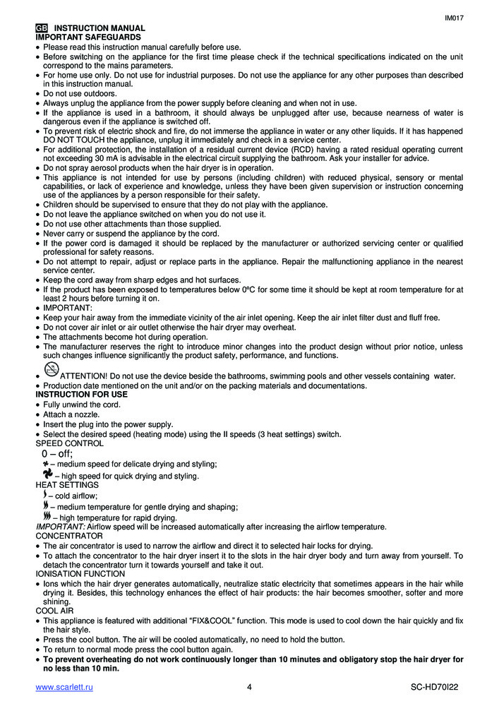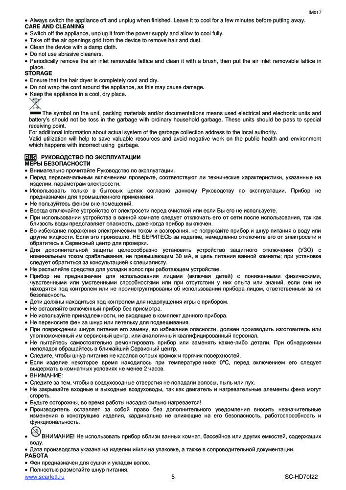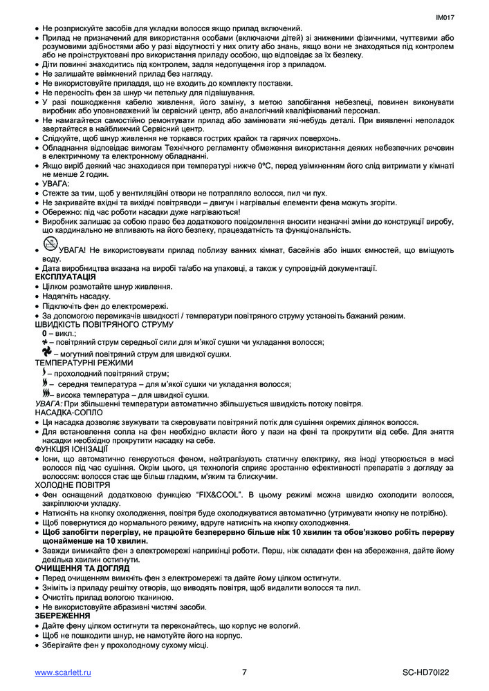 Фен Scarlett SC-HD70I22 оснащён специальной технологией Advenced tourmaline, что обеспечивает защиту волос от обезвоживания и пересушивания при сушке. Благодаря высокой мощности прибора результат достигается в кратчайшие сроки — отличное решение для тех, кто экономит время сборов по утрам. 2 режима мощности потока воздуха, 3 режима температуры потока воздуха для любого типа волос и насадка-сопло позволят найти свой подход к любым структуре и типу волос. А «Гид по стилю», идущий в комплекте с прибором, представляет собой собрание лучших советов от ведущего стилистка Scarlett Tio Style и несомненно поможет создавать неожиданные стильые образы на профессиональном уровне, не выходя из лома.