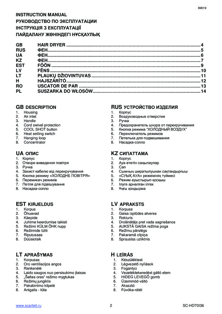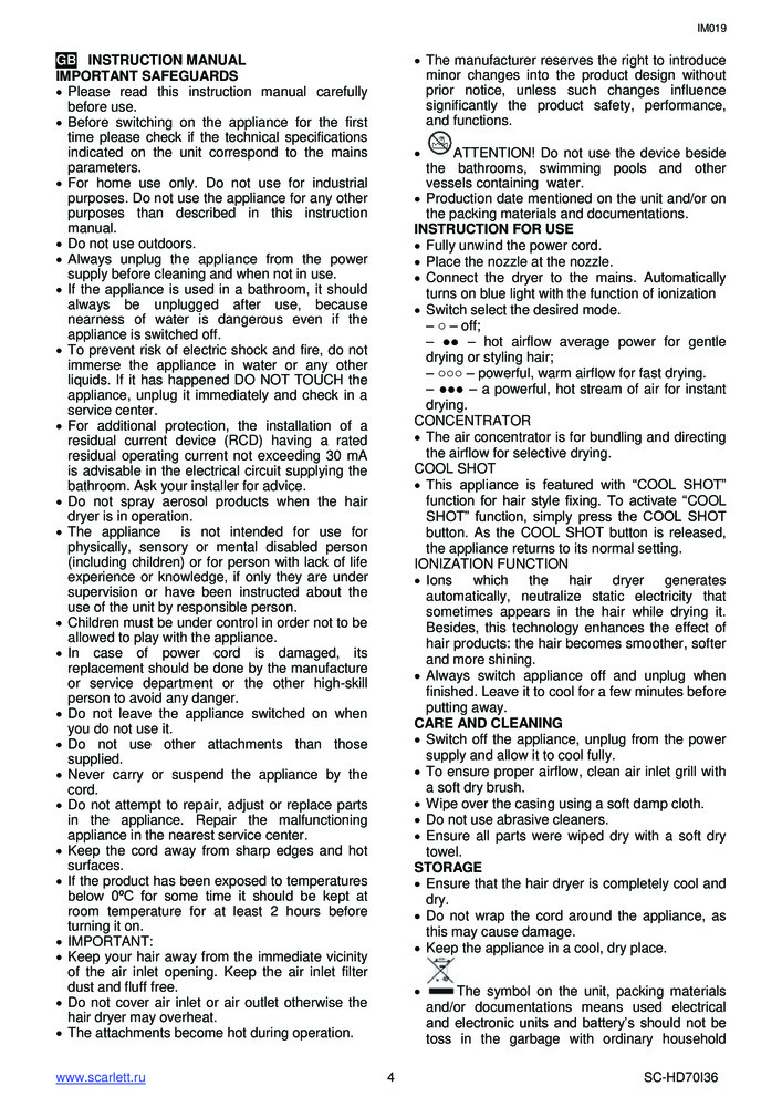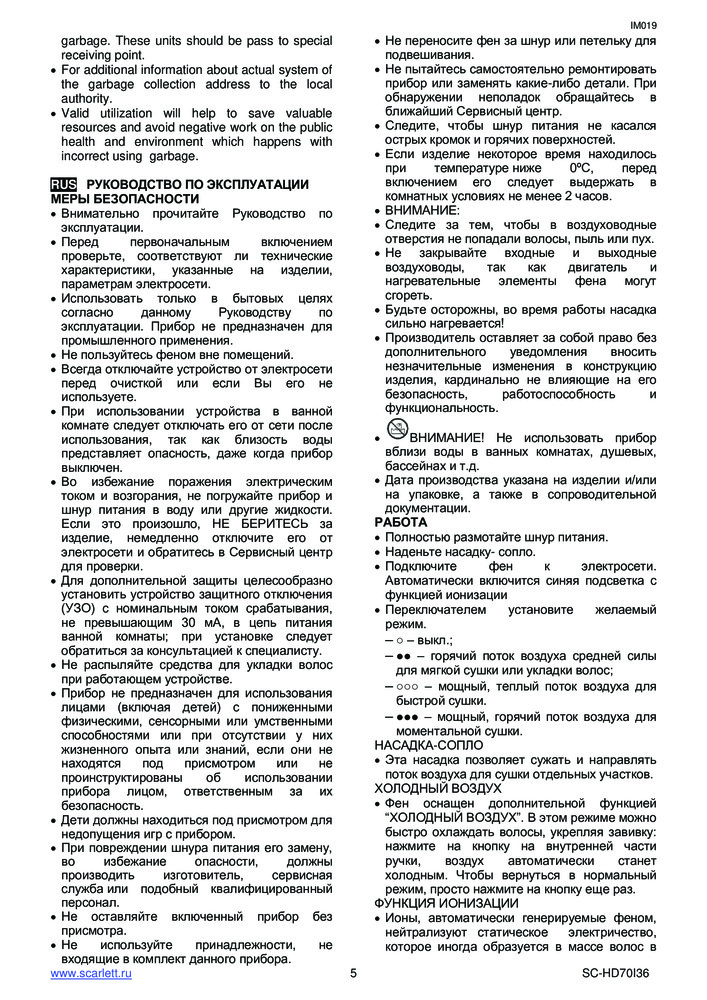 Отзывы «Фен SC-HD70I36»