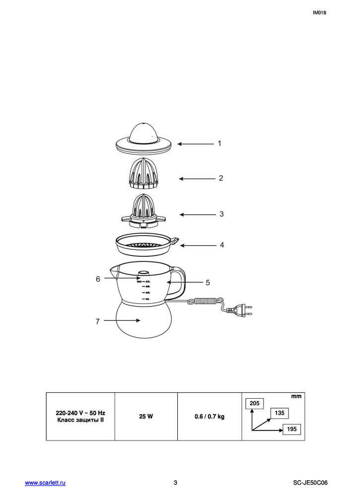 Scarlett Соковыжималка для цитрусов SC-JE50C06+268 две насадки мерное деление компактность