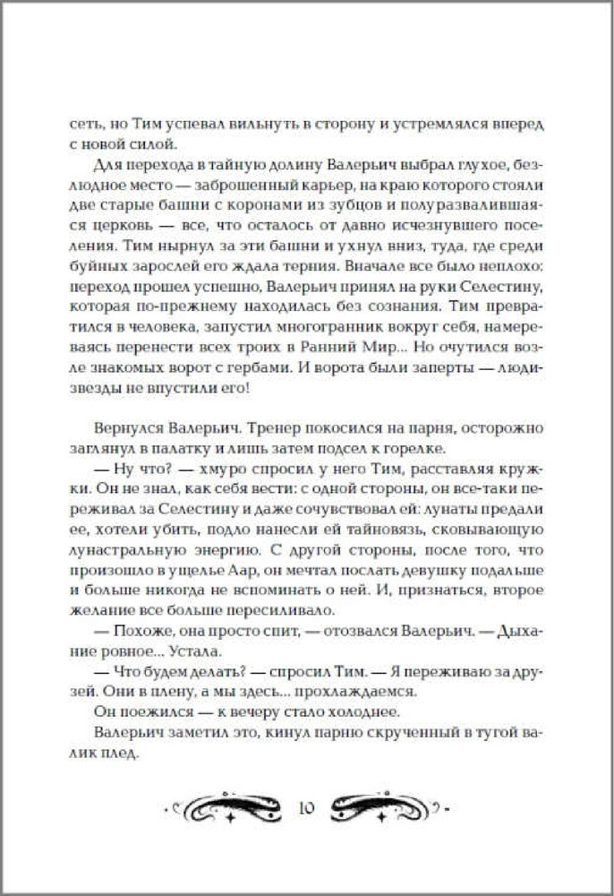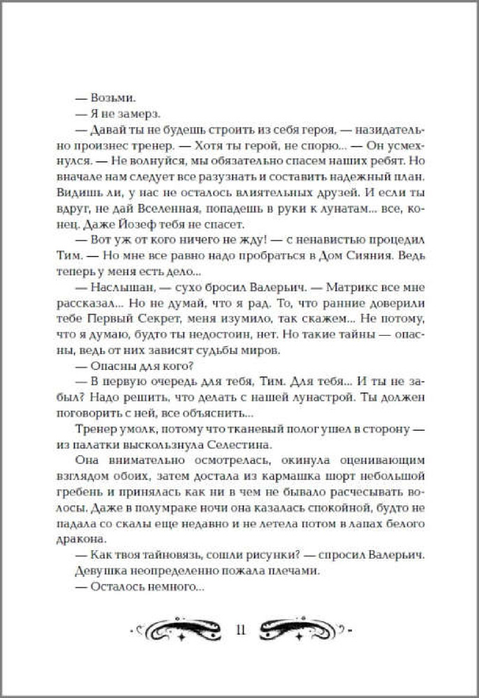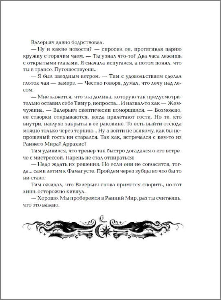 Не знала как можно заставить 10 летнего ребёнка читать, пока для себя не купила все книги "часодеи", теперь не знаю как забрать книгу, за 3 месяца уже прочитал всю серию часодеев, перешёл на лунастров... Спасибо автору, книги читаются на одном дыхании, при чем не важно взрослый или ребёнок её читает