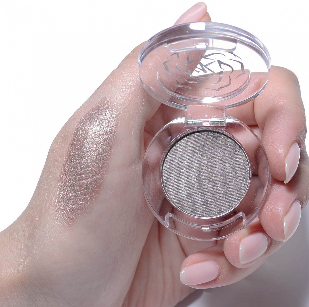 Тени маленькие, на ощупь чуть шершавые, не хватает им шелковистости. Дают слабое деликатное сияние, оттенок "ореховое пралине" имеет теплый коричневатый подтон, смотрится естественно, неброско.