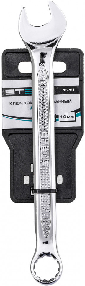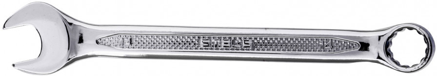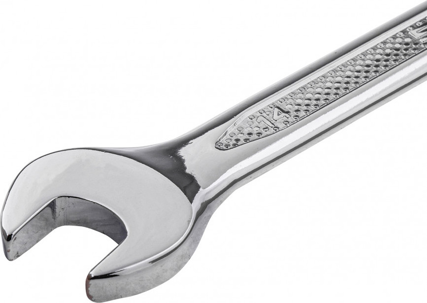 Ключ комбинированный предназначен для монтажа/ демонтажа резьбовых соединений. Изготовлен из высококачественной хромованадиевой (CrV) стали. Твердость 43-45 HRC. Ключ с одной стороны оснащен захватом открытого типа — рожковым и накидным (кольцевым) с другой стороны.