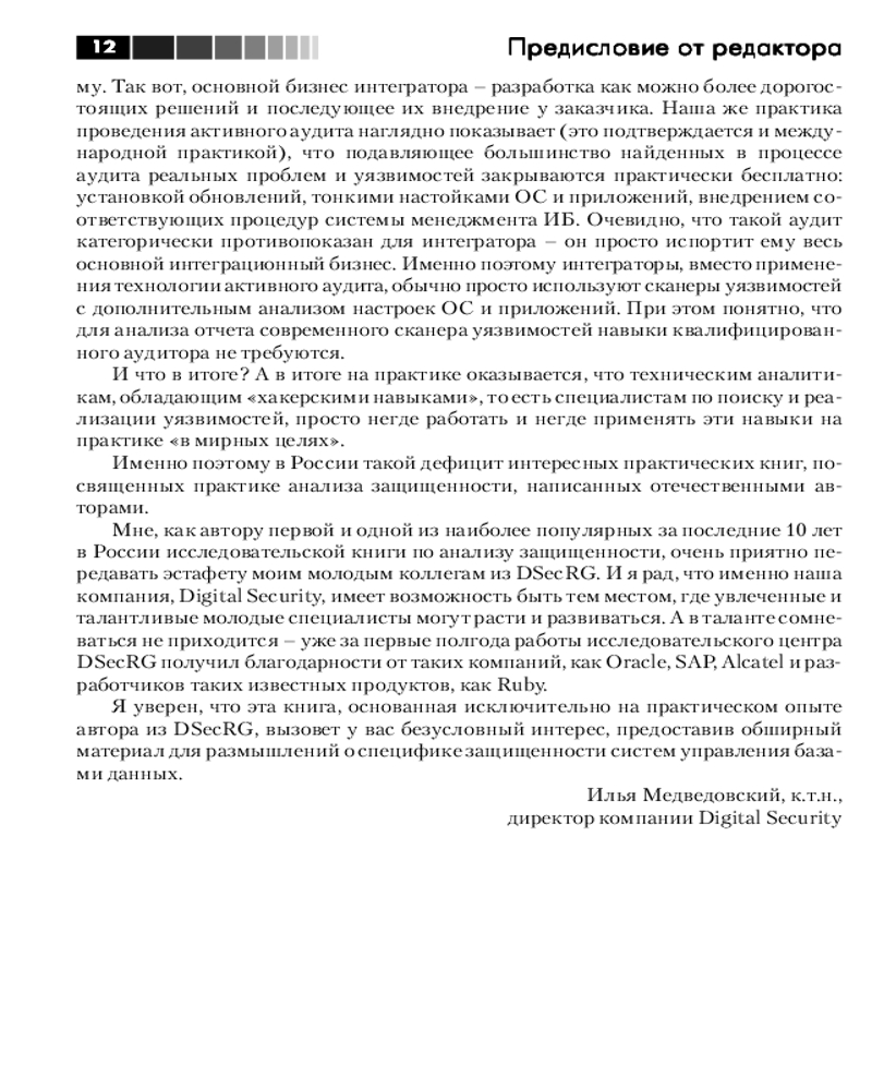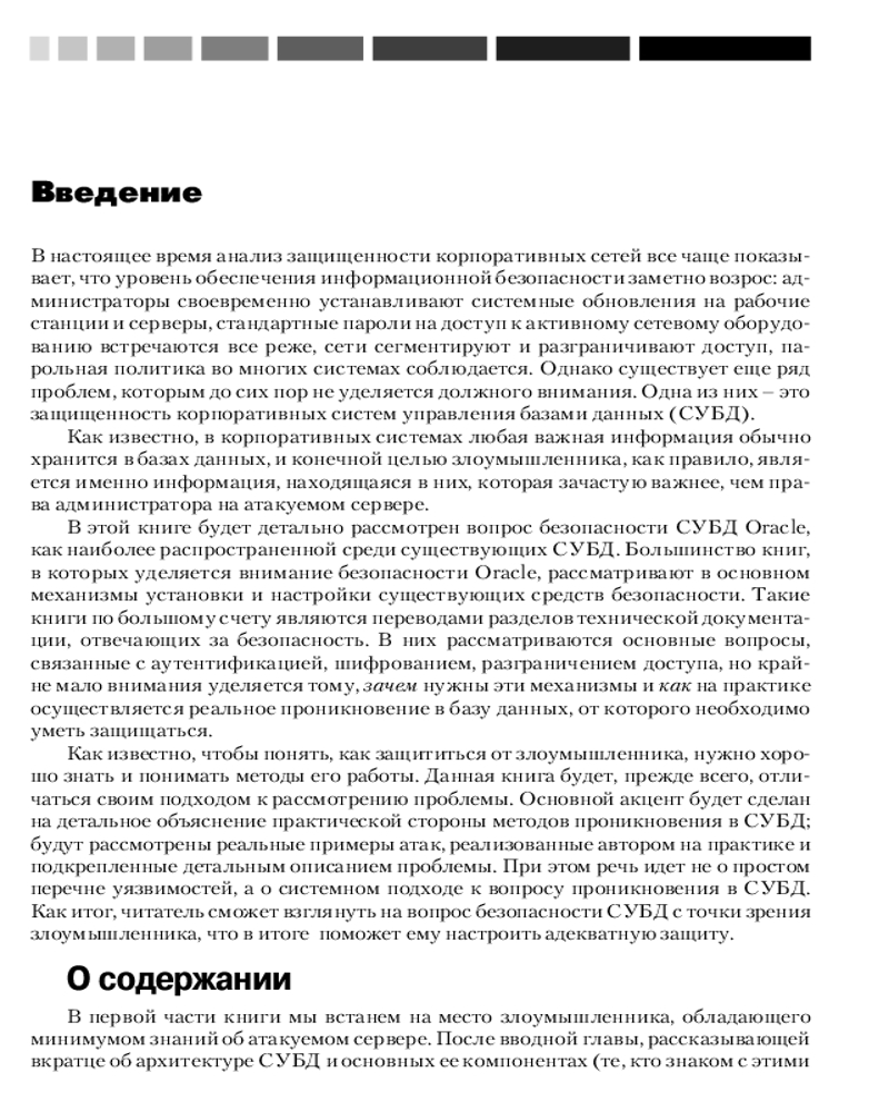 💳 Оплатить за товар можно при получении 🇰🇿 Есть бесплатная доставка по Казахстану от 1 дня 🎁 Копите бонусы с каждой покупки Эта книга является первым исследованием, написанным отечественным автором, которое посвящено проблеме безопасности СУБД Oracle. Материал книги основан на практическом опыте автора, полученном им в результате проведения тестов на проникновение и обширной исследовательской деятельности в области безопасности СУБД. |