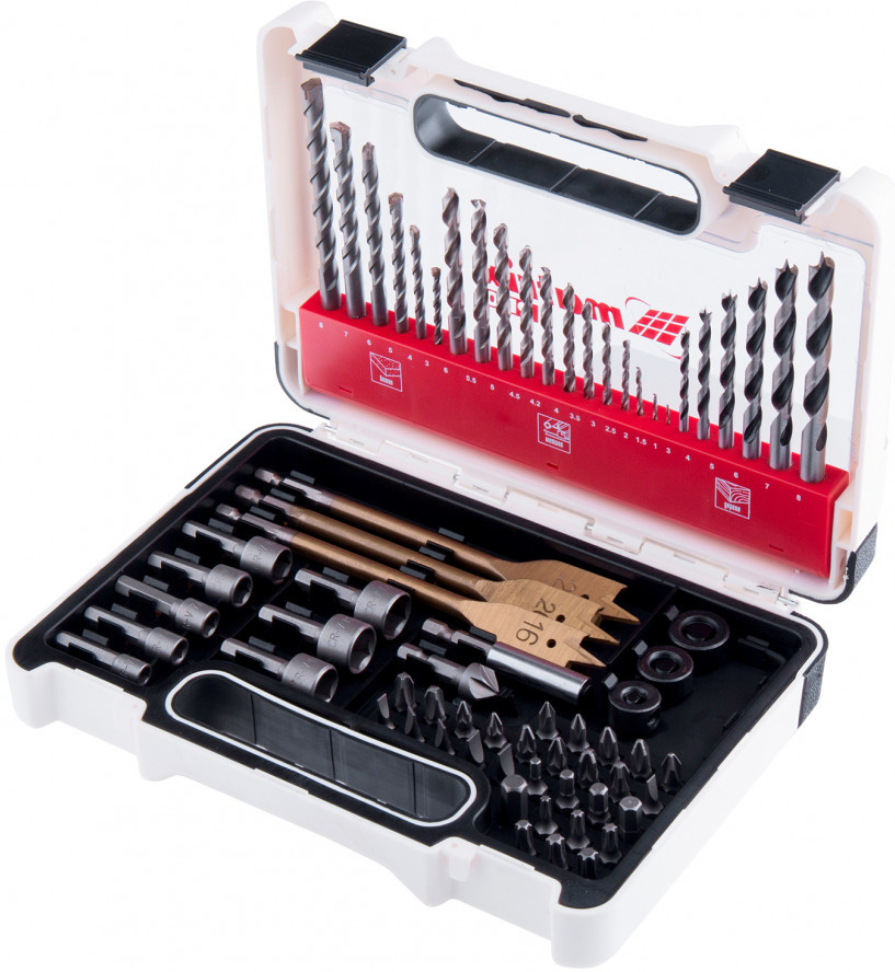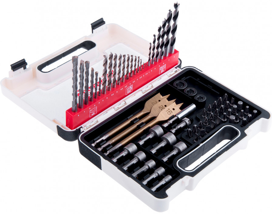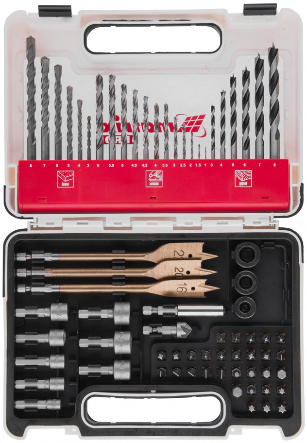 Серия: Pro В набор входит высококачественные сверла по бетону, металлу, дереву и пластику, отверточные биты и головки наиболее распространенных размеров. Оснастка изготовлена с применением высочайших требований и стандартов к качеству. Набор пригоден как для профессионального, так и для бытового использования.