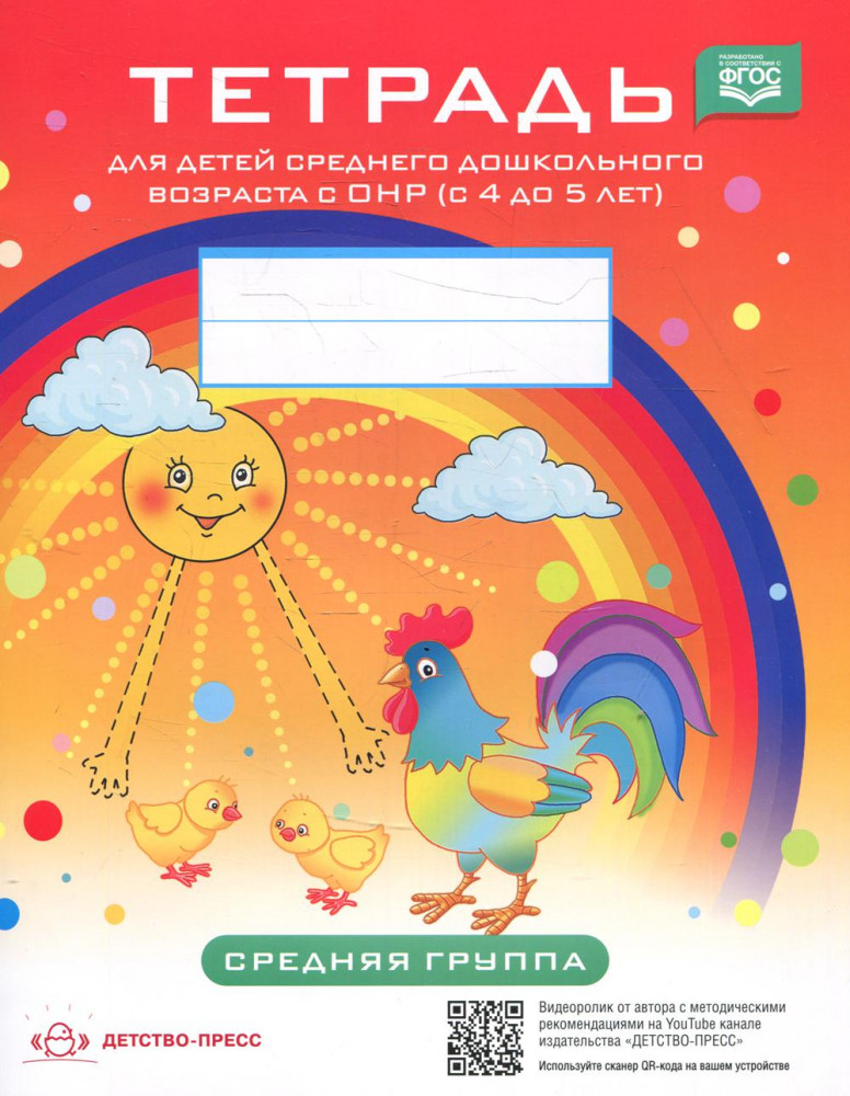 Тетрадь для детей среднего дошкольного возраста с ОНР (с 4 до 5 лет). Средняя группа. ФГОС-20% +16