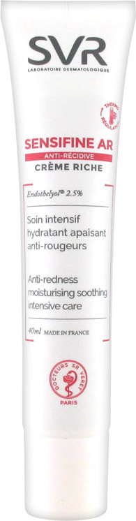 SVR Крем для лица «Anti-recidive»В данный момент этот товар отсутствует в продаже. Возможно, у нас найдется аналогичный или похожий товар здесь. Серия: Sensifine AR Благодаря уникальной формуле Сенсифин AR крем Риш мгновенно освежает и обеспечивает эффект прохлады, возвращая коже чувство комфорта. Инновационный компонент Endothelyol 2.5% уменьшает покраснения, видимость мелких сосудов, улучшает микроциркуляцию в коже, предупреждает появление новых сосудов. Экстракт солодки успокаивает кожу и устраняет застойные явления. Сквалан растительного происхождения и масло карите интенсивно увлажняет и питает кожу. Крем обладает нежирной текстурой, которая легко распределяется на коже. Содержит зеленые пигменты, которые визуально уменьшают покраснения. |