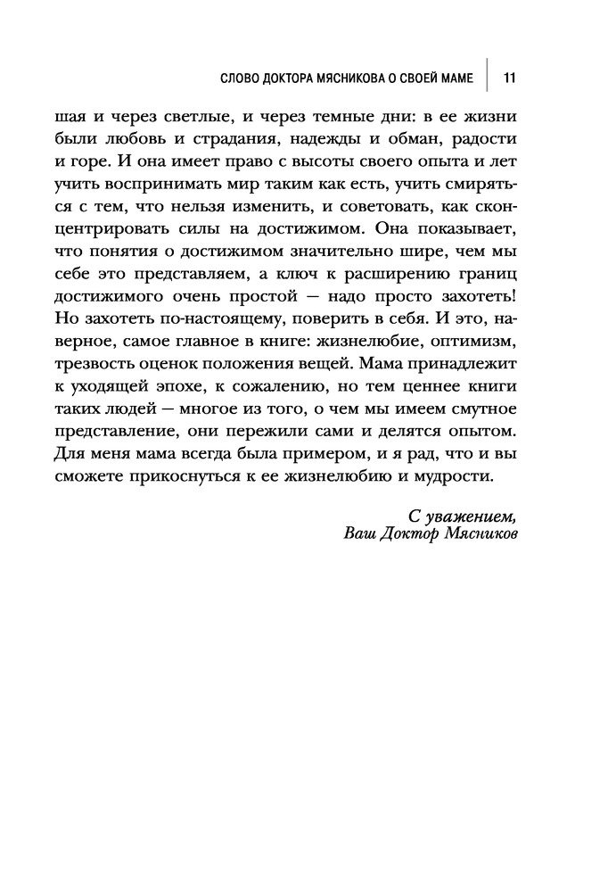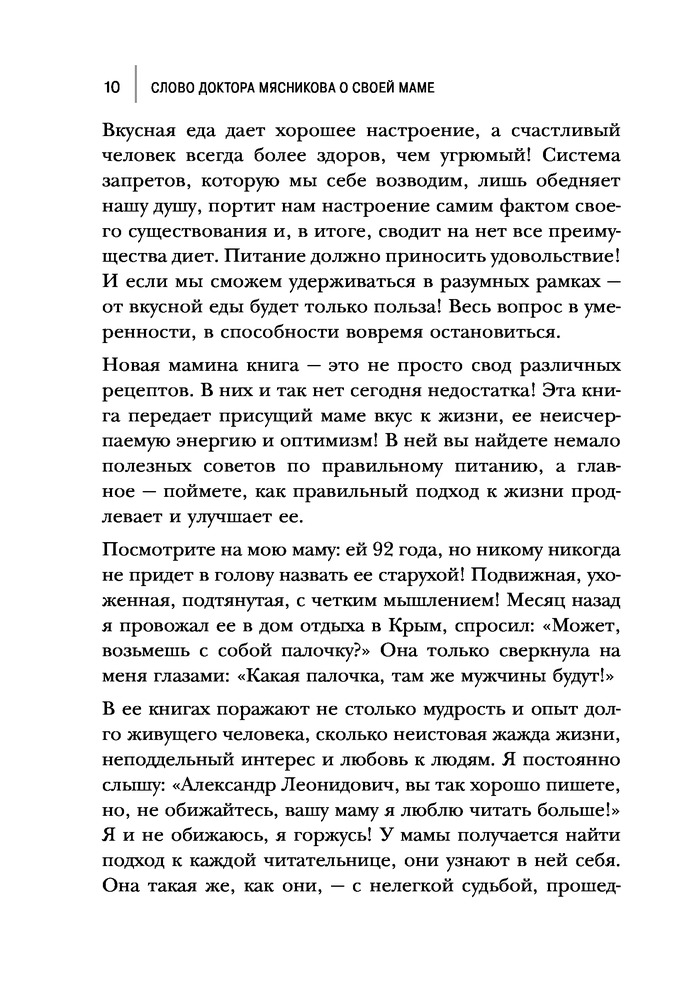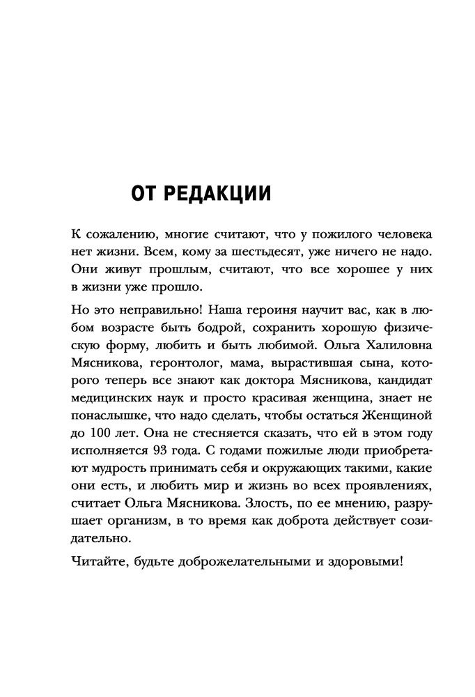 Энциклопедия долголетия Ольги МясниковойВ данный момент этот товар отсутствует в продаже. Возможно, у нас найдется аналогичный или похожий товар здесь. Серия: О самом главном с доктором Мясниковым Ольга Мясникова — врач-геронтолог и по совместительству мама одного из самых известных врачей в России — доктора Александра Леонидовича Мясникова. В своей книге автор собрала самые полезные сведения о том, как сохранить здоровье в пожилом возрасте: распорядок дня, правила питания, разумная и безопасная физическая активность, психологическое здоровье. Советы мудрого и талантливого врача, которая в свои 92 моет пол руками, готовит на всю семью и занимается садоводством, наверняка помогут вам обрести уверенность в своих силах, изменить жизнь в сторону здоровья и обрести долголетие. |