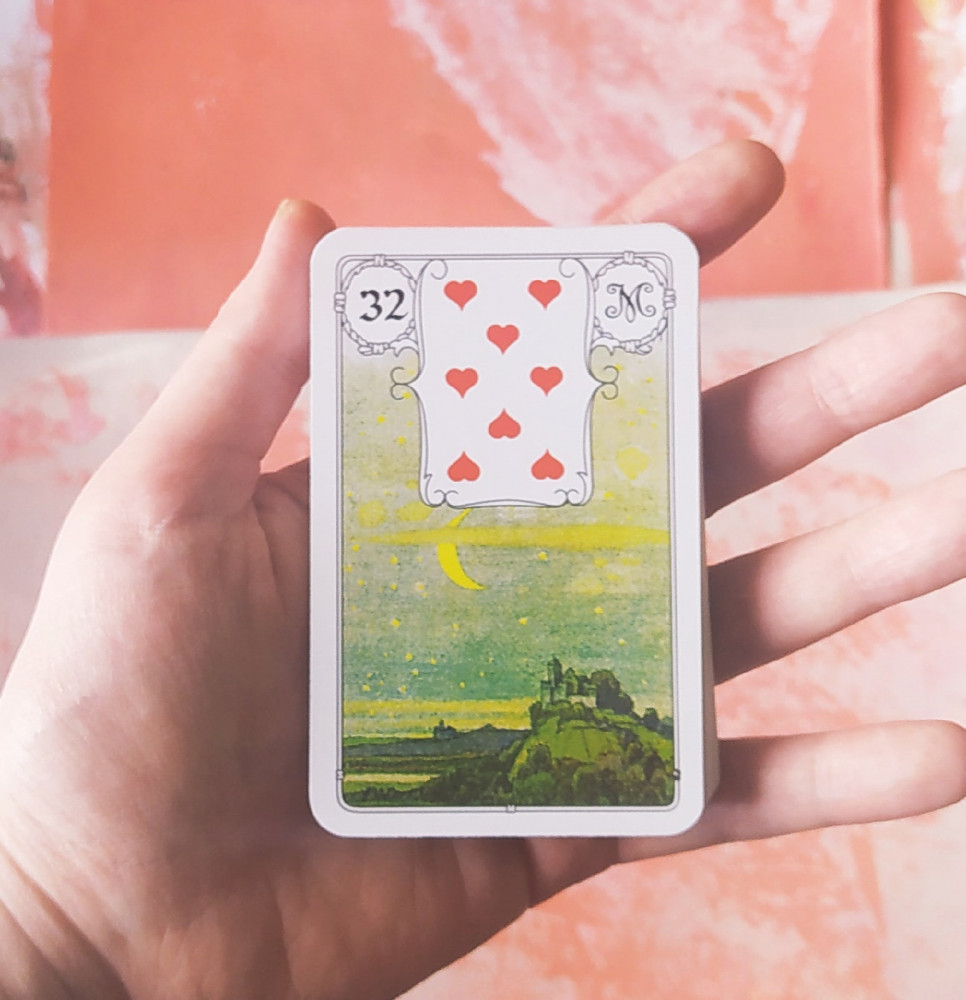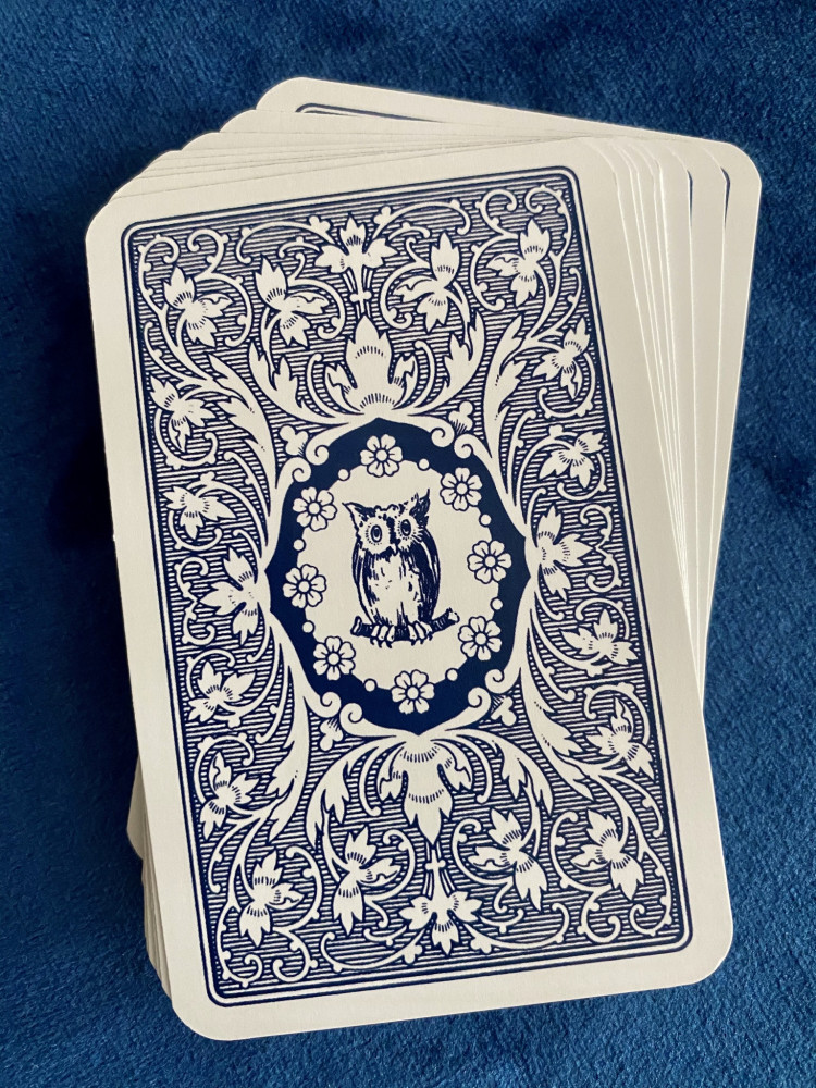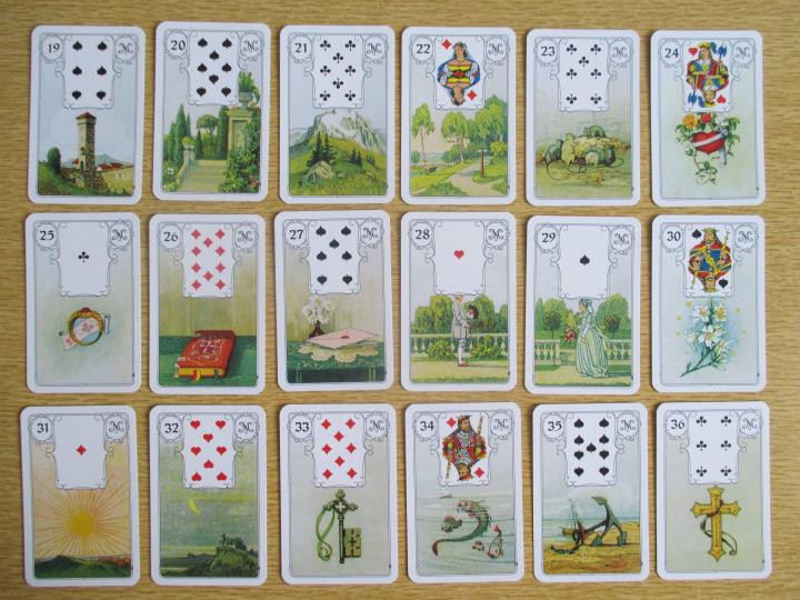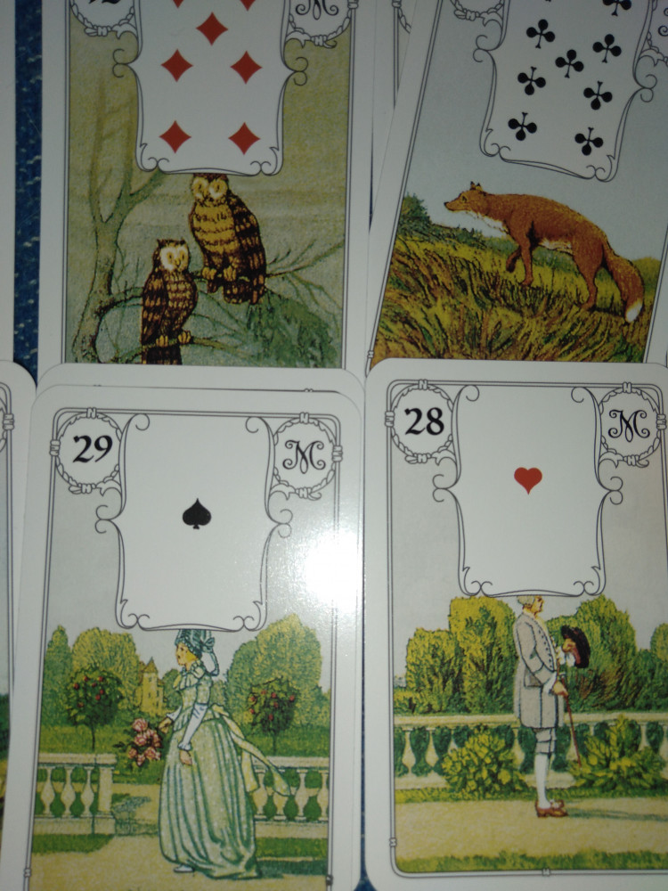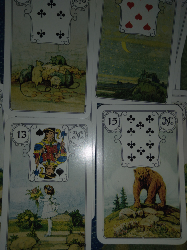 Мне очень нравится эта колода "голубая сова". Моей колоде 20 лет, она уже стала изнашиваться и я искала ей замену. В моей коллекции колод Ленорман много, но эта колода мне ближе всех. Размер карт "покет" очень удобен, особенно для расклада "гран табло". Картон тонковат, но карты глянцевые и хорошо скользят.