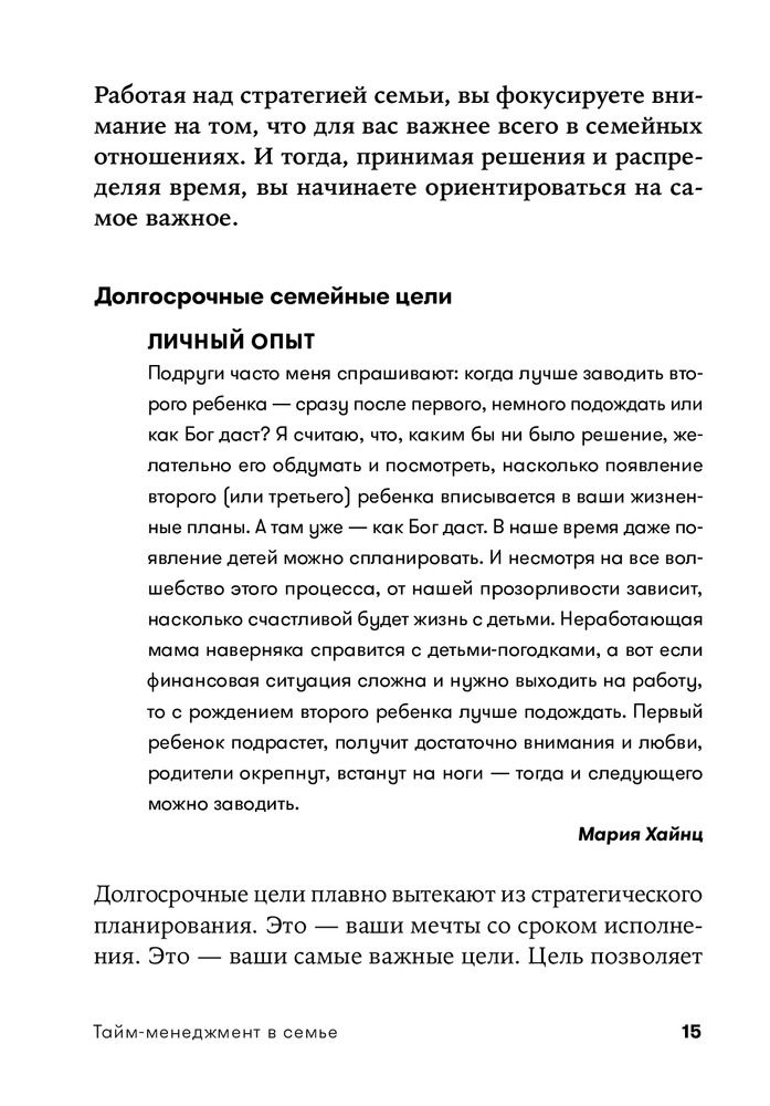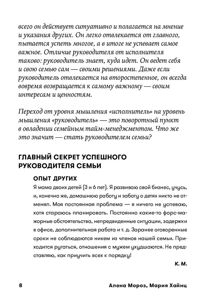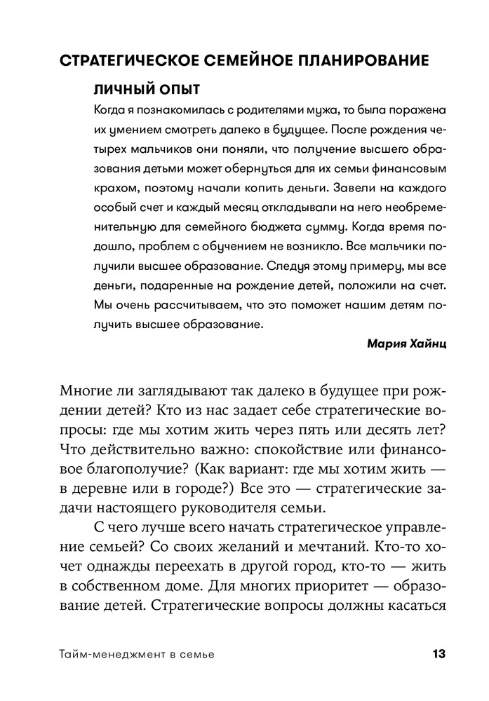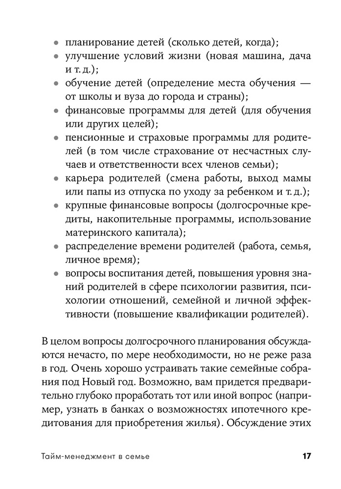 Очень хорошая книга. Фундаментальная. Я бы назвал ее не только тайм - но и полностью - семейный менеджмент, или даже шире - жизненный менеджмент. Есть задумка - подарить ее многим родным и близким. Всем рекомендую.