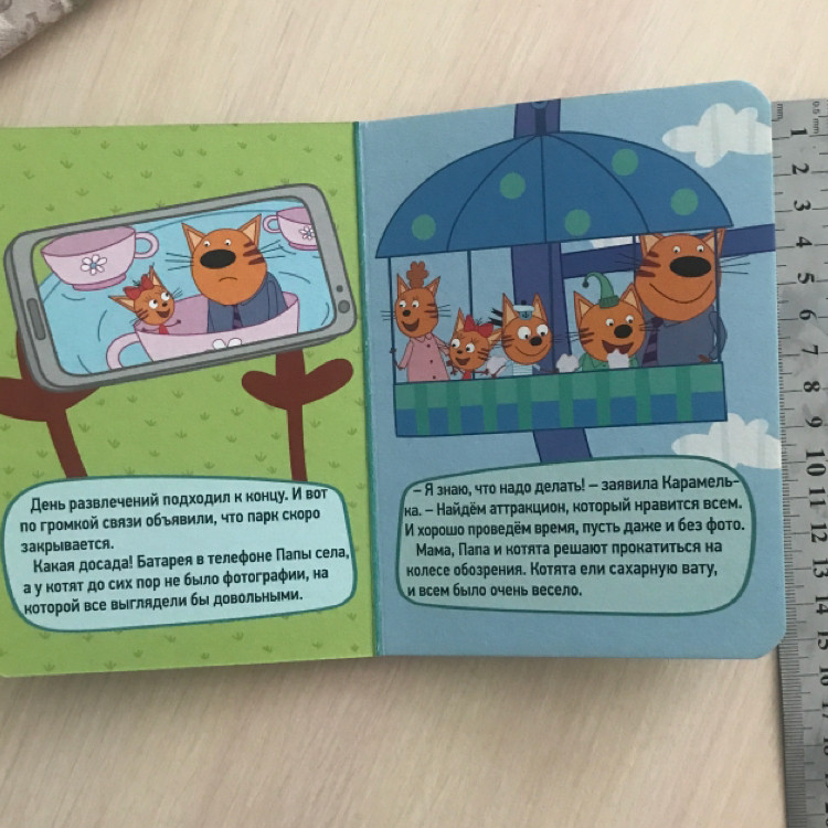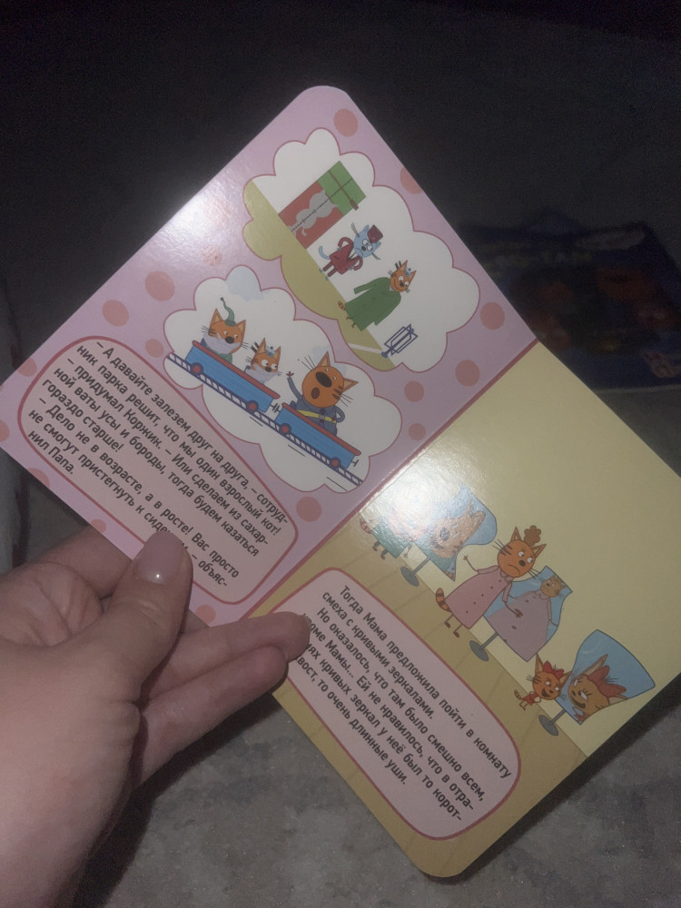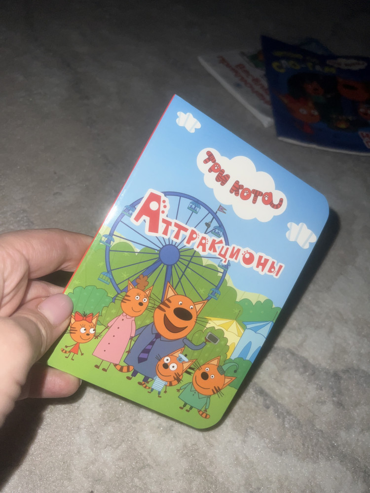 Книжка маленькая, но интересная) плотные листы и яркие картинки! Фанатам мультика про три кота однозначно понравится!