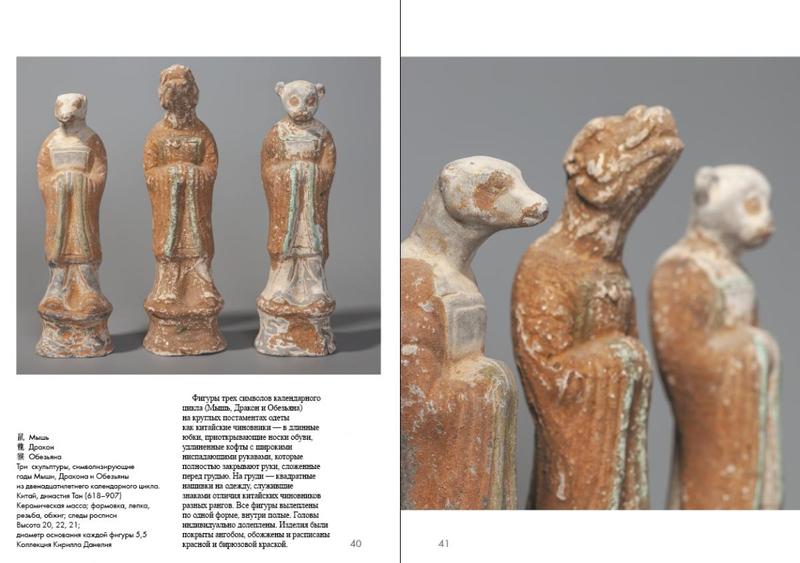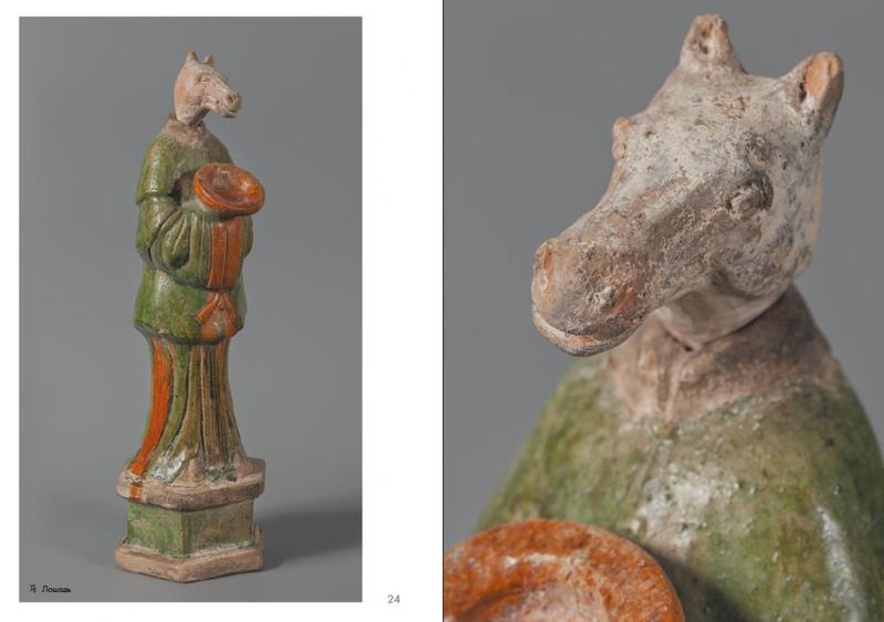 Без сомнения, много нового и интересного можно почерпнуть на камерной, но глубокой по смыслу и изящной по форме выставке «Стражи времени», каталогом которой является данная книга. В книге представлены скульптурные работы китайских мастеров, выполненные из керамики. Это традиционная пластика, относящаяся ко времени правления в Китае династий Хань, Тан и Мин (II в. до н. э.–XVII в. н.э.). Согласно тогдашним китайским представлениям, Время неразрывно связано с Пространством, а вместе они составляют «канву» хронологии и мироздания в целом, оказывая влияние на жизнь человека. Постепенно сформировалась система китайского летоисчисления — шестидесятилетний цикл, связанный с двенадцатью зооморфными знаками (год Мыши, Быка, Тигра, Зайца и т.д.) и с пятью стихиями.