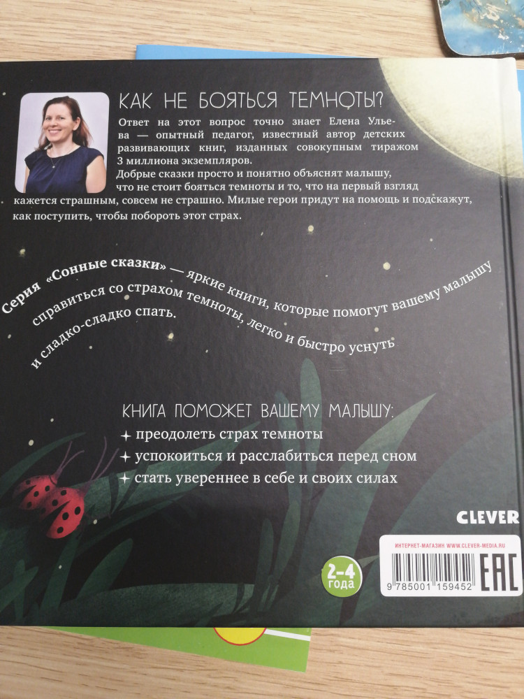 Отличная книжка! Твёрдый переплёт, страницы белые. Очень красивая, интересное содержание. В книжке - три Мамин помощник). короткие сказки (Луна и звёздочки; Светлячок и фонарик;. Есть рекомендации. В конце книжки - вопросы по прочитанным сказкам и советы, как не бояться темноты.