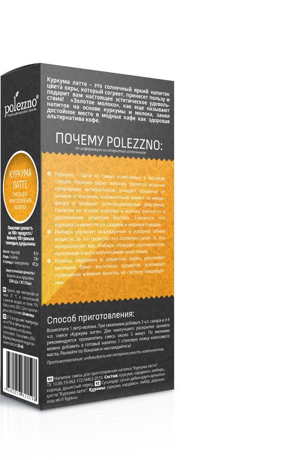 Polezzno Смесь для приготовления напитка «Куркума Latte»вкусный пряный полезный готовая смесь на любителя В данный момент этот товар отсутствует в продаже. Возможно, у нас найдется аналогичный или похожий товар здесь. Куркума латте — это солнечный яркий напиток цвета охры, который согреет, принесет пользу и подарит вам настоящее эстетическое удовольствие! «Золотое молоко», как еще называют напиток на основе куркумы и молока, занял достойное место в модных кафе как здоровая альтернатива кофе. |
