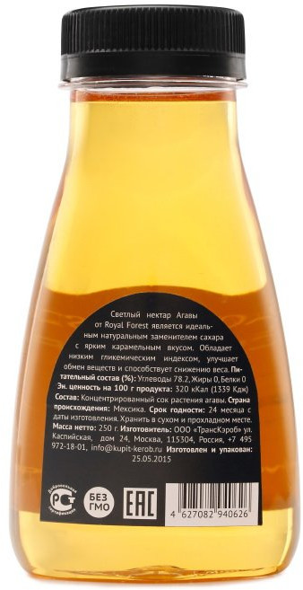 В данный момент этот товар отсутствует в продаже. Возможно, у нас найдется аналогичный или похожий товар здесь. Светлый нектар агавы — идеальный заменитель сахара с ярким карамельным вкусом. Обладает низким гликемическим индексом, что препятствует развитию сахарного диабета, улучшает обмен веществ и способствует снижению веса.