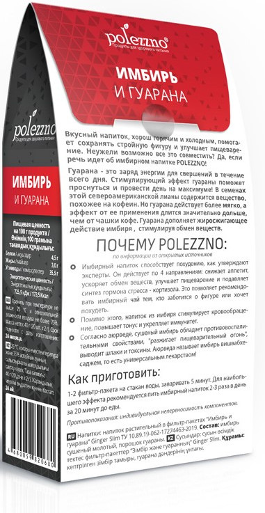 Polezzno Чай имбирный с гуараной в фильтр-пакетах