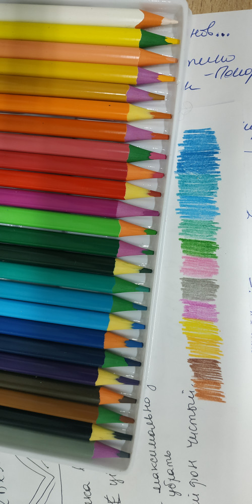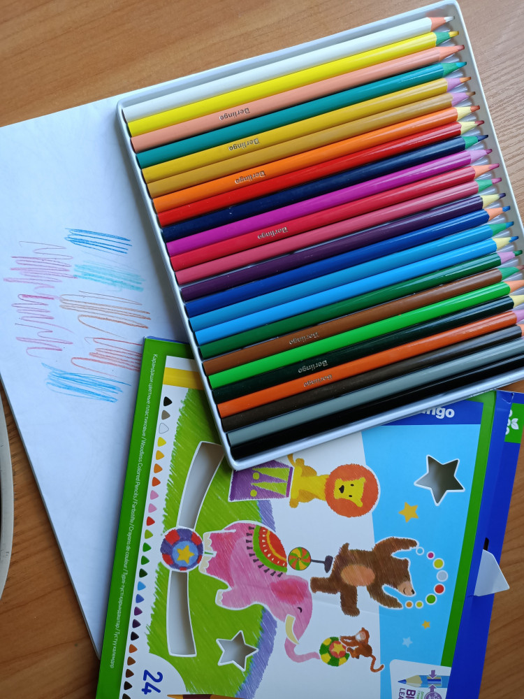 Очень понравились карандаши! действительно мягкие и яркие! ребенок с удовольствием рисует.