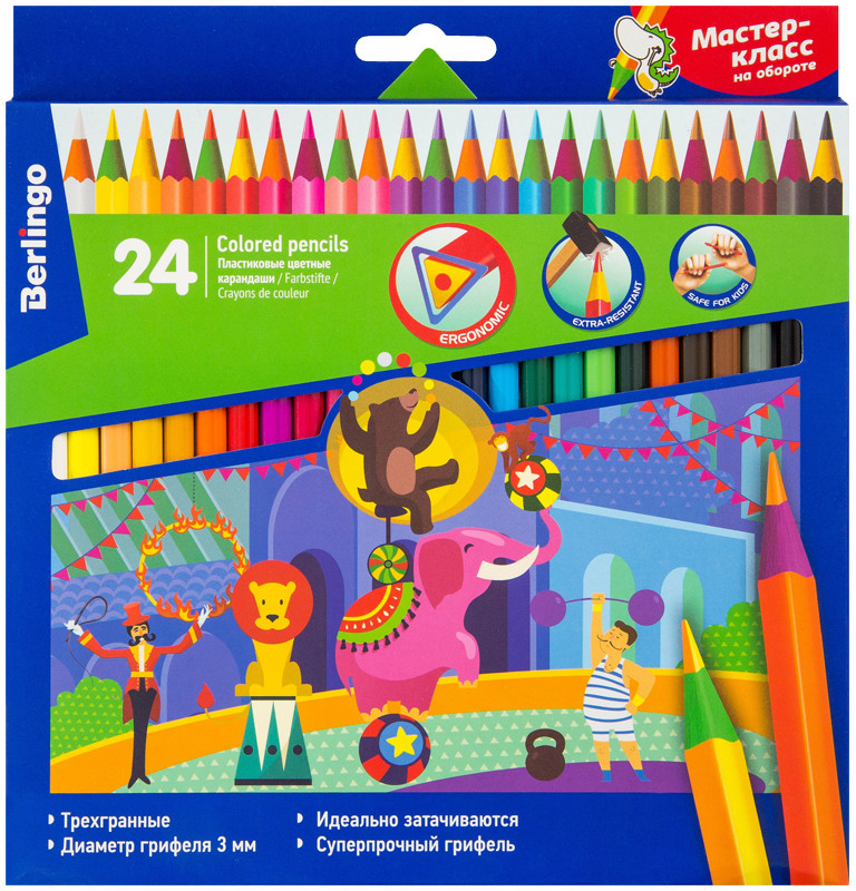 Berlingo Набор цветных карандашейВ данный момент этот товар отсутствует в продаже. Возможно, у нас найдется аналогичный или похожий товар здесь. Серия: Цирк Карандаши цветные пластиковые с заточенным грифелем. Эргономичный трехгранный корпус. Мягкий яркий грифель. Грифель не ломается при падении. Гибкий корпус разных цветов. Штрихи мягко ложатся на бумагу. Карандаши легко затачиваются. |