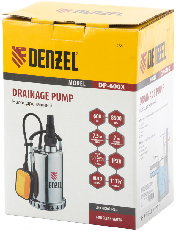 Denzel Насос дренажный DP600XВ данный момент этот товар отсутствует в продаже. Возможно, у нас найдется аналогичный или похожий товар здесь. Дренажный насос для чистой воды DP600X торговой марки Denzel предназначен для выкачивания воды из подвальных помещений, бочек и других резервуаров. Оснащён поплавковым выключателем и способен прокачивать частицы размером до 5 мм. Модель DP600X мощностью 600 Вт в течение часа может перекачать до 8500 литров жидкости. |