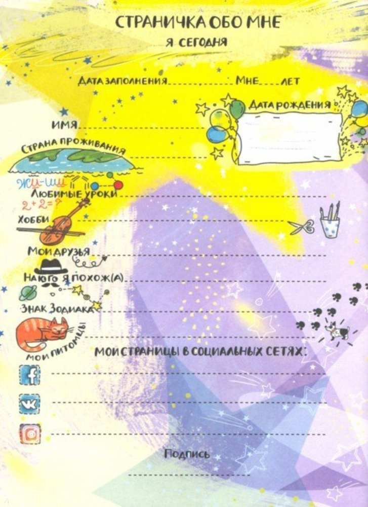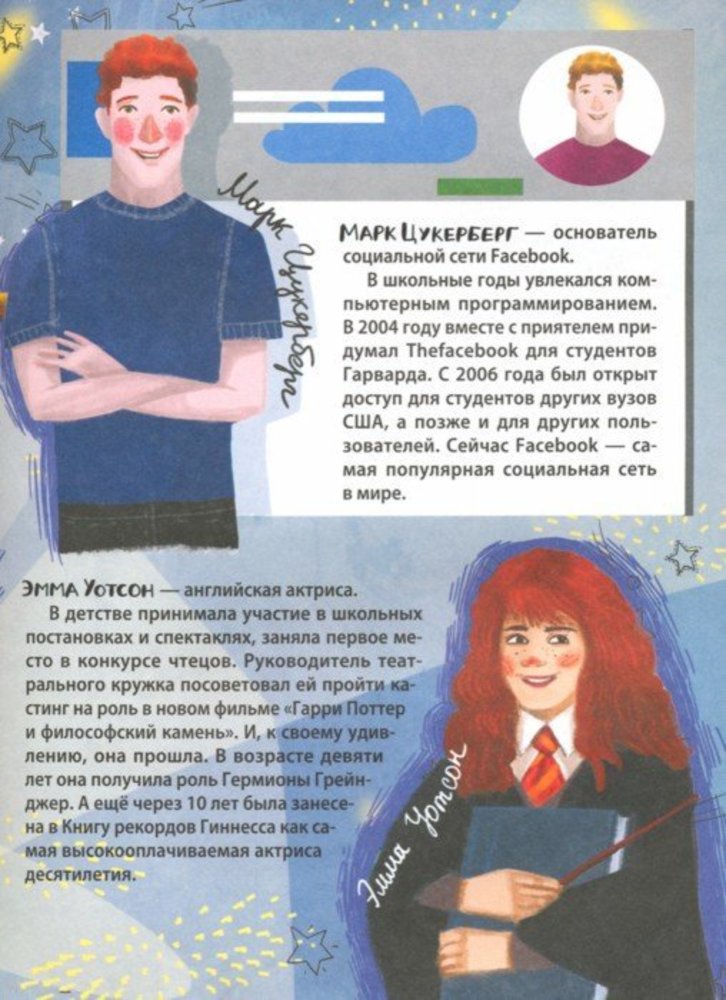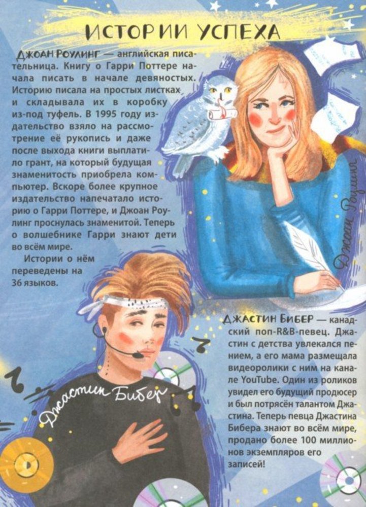 Я Суперзвезда!Евгения Владимировна Малинкина В данный момент этот товар отсутствует в продаже. Возможно, у нас найдется аналогичный или похожий товар здесь. Серия: Дневнички Ты лучше всех танцуешь или хранишь величайшую коллекцию марок? А может, умеешь кататься на велосипеде без рук и успешно учишь своего попугая разговаривать?Все твои достижения нужно где-то зафиксировать! А заодно — с помощью тестов узнать, в чем ещё тебя ждёт успех, записать цели и планы на ближайшие лет пятьдесят и составить расписание всех твоих занятий. Для среднего школьного возраста. |