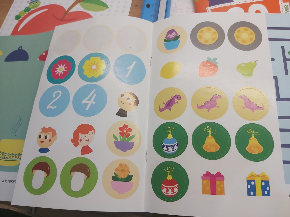 Рекомендую к покупке. доче 2,1 ей интересно. Познавательно. Есть наклейки .задания не повторяются .развивается моторика.