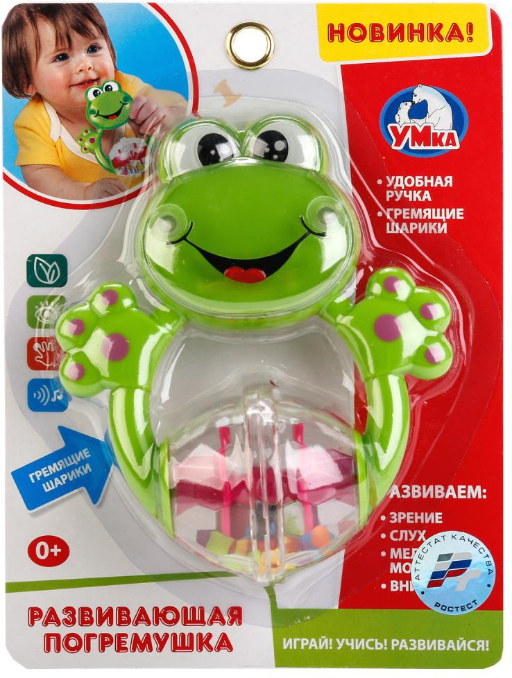 УМка Погремушка «Лягушка с шариками»В данный момент этот товар отсутствует в продаже. Возможно, у нас найдется аналогичный или похожий товар здесь. Погремушка «Лягушка с шариками» создана для игры и веселья. Гремящие шарики и яркие цвета привлекут внимание малыша и не дадут ему заскучать. На погремушке размещена удобная для детских пальчиков ручка, внутри которой катаются и весело гремят шарики. Сделана из качественного, безопасного пластика с использованием пищевых красителей. |