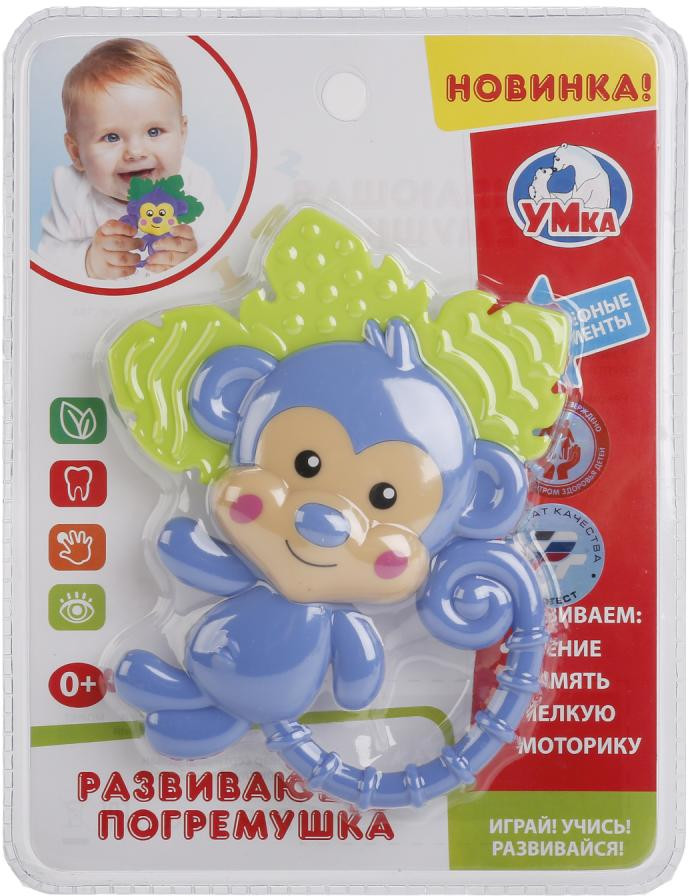 УМка Погремушка-прорезыватель «Обезьянка»В данный момент этот товар отсутствует в продаже. Возможно, у нас найдется аналогичный или похожий товар здесь. Прорезыватель-погремушка «Обезьянка» — это полезная игрушка, которая просто необходима в период роста зубок у малыша. Гремящие шарики и рельефные элементы привлекут внимание, а приятная текстура поможет снять зуд и раздражение в дёснах. Она сделана из качественного, безопасного пластика с использованием пищевых красителей. |