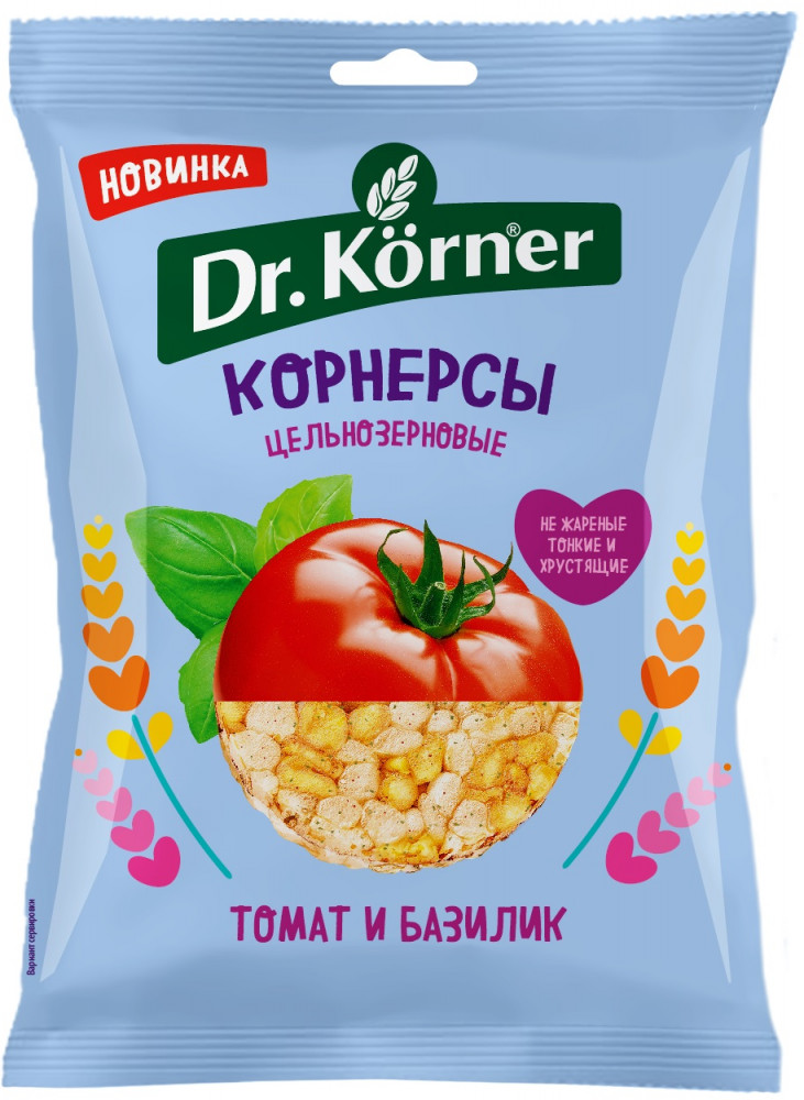 Dr. Körner Чипсы цельнозерновые кукурузно-рисовые «Томат и базилик»