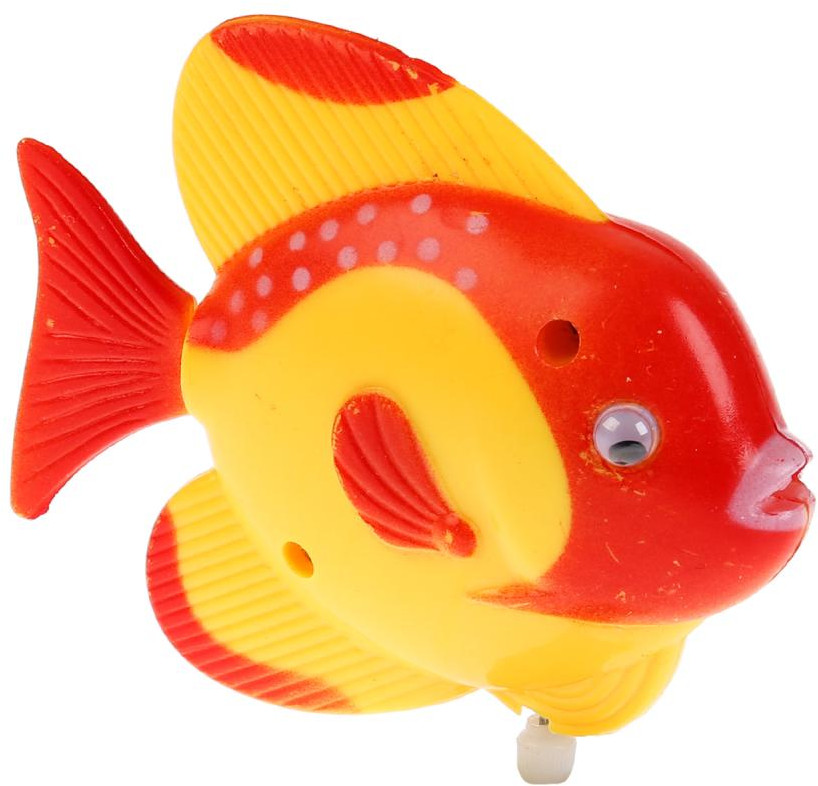 Игрушка яркая, небольшая, хвостик шевелится при заводе, но когда опускаешь в воду она сразу идет ко дну, но внучке нравится с ней играть, даже после купания не хочет с рыбкой расставаться.