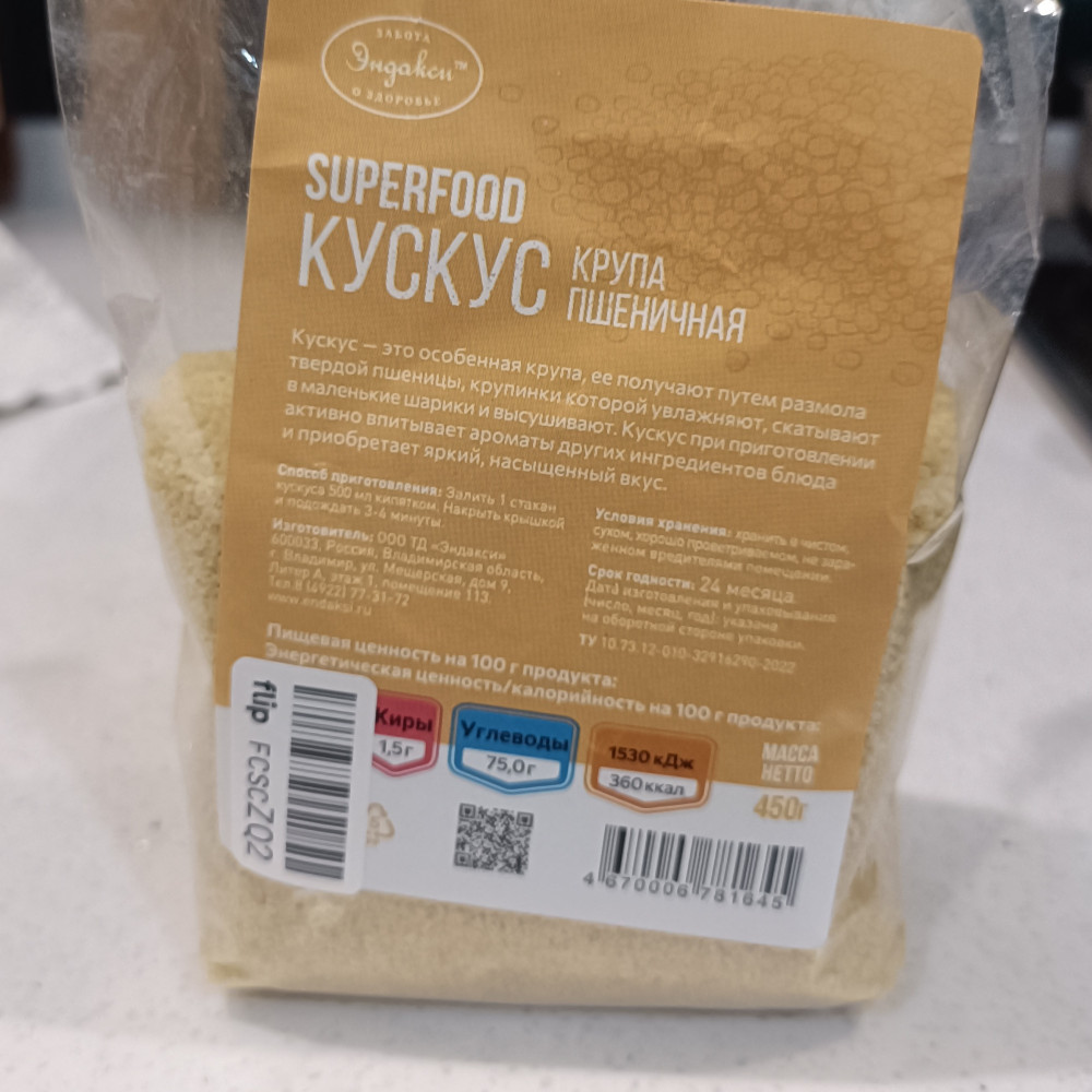 Вчера получила заказ, кускус порадовал, очень вкусно.