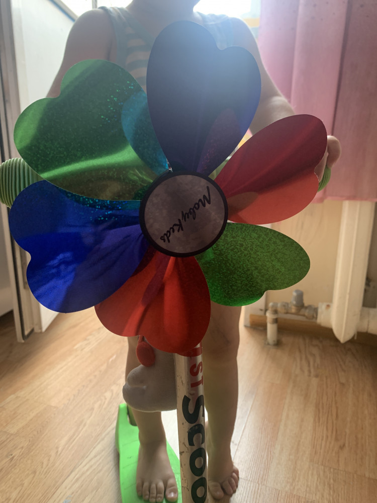 Отличный ветерок, трехцветный, повесили на самокат.