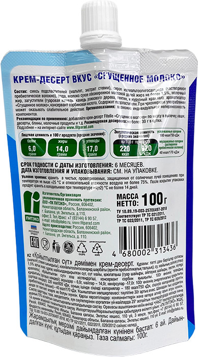 Fit Parad Крем-десерт «Сгущенное молоко»+42 вкус сгущенки без сахара жидкая консистенция