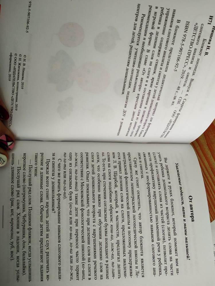 💳 Оплатить за товар можно при получении 🇰🇿 Есть бесплатная доставка по Казахстану от 1 дня 🎁 Копите бонусы с каждой покупки Серия: Блокнот логопеда В блокноте представлен дидактический материал для формирования навыков слогового анализа и синтеза у детей дошкольного возраста. Каждое упражнение содержит стишок, яркие картинки и позволяет тренировать ребенка в делении слов на слоги и в составлении слов из данных слогов в игровой форме. В главе «От автора» взрослым даются методические рекомендации и необходимые разъяснения. |