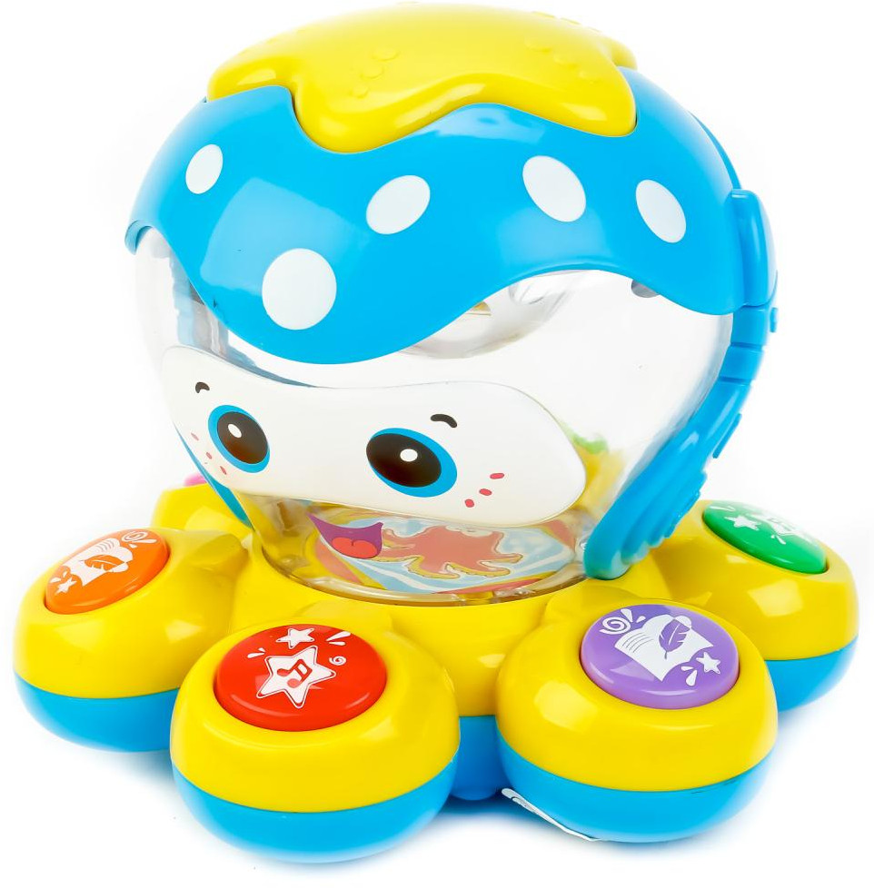 В данный момент этот товар отсутствует в продаже. Возможно, у нас найдется аналогичный или похожий товар здесь. В коллекции игрушек вашего малыша появится не просто забавный осьминожка, а настоящий развлекательный центр для поднятия настроения крохи. Ведь изделие оснащено светозвуковым модулем, что позволяет ему воспроизводить веселые детские песенки и стишки, сопровождая их яркой подсветкой корпуса.