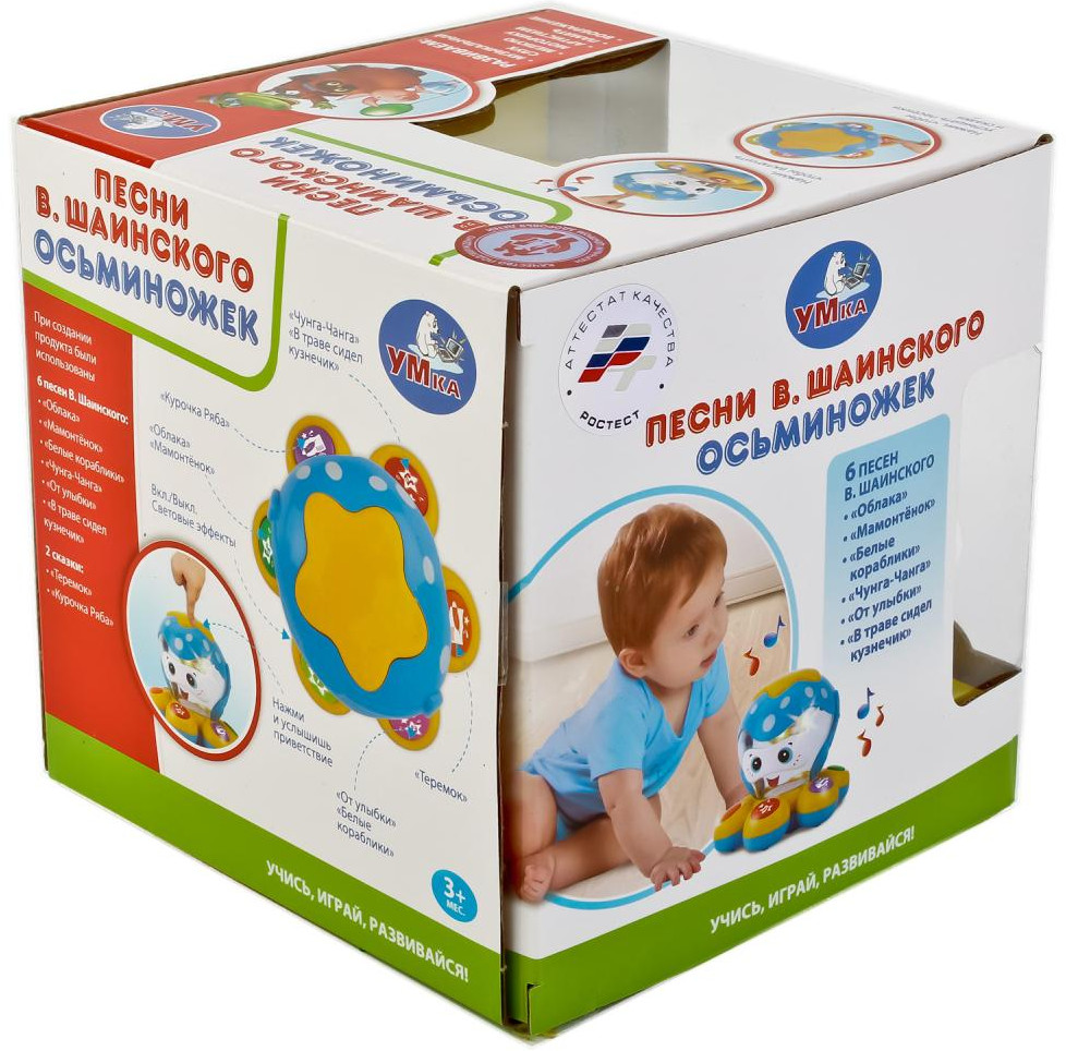Яркая игрушка напоминает забавного осьминога со смешной мордашкой и красочными кнопками на корпусе. При нажатии на них дети услышат 6 веселых песенок Владимира Шаинского, названия цветов, животных и стихи о них, а игрушка при этом будет переливаться разноцветными огоньками. Крохи с удовольствием проведут время за игрой с осьминогом, улучшая при этом слух, цветовосприятие и знакомясь с различными животными, а также расширяя кругозор. Изделие выполнено из сертифицированного, ударопрочного пластика, который окрашен в насыщенные оттенки стойкими и безопасными для детей красителями. |