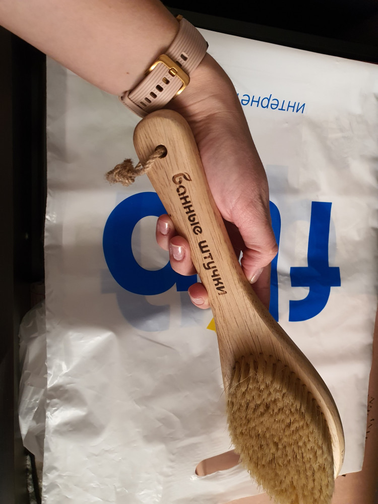 Щётка мне понравилась. Щетина ближе к мягкой, производителем заявлена как натуральная, но не указана чья щетина. Ручка удобно лежит в руке. Не тяжёлая. Приобретена для сухого массажа. О дальнейшей судьбе щетки и моих впечатлениях от использования напишу позже.