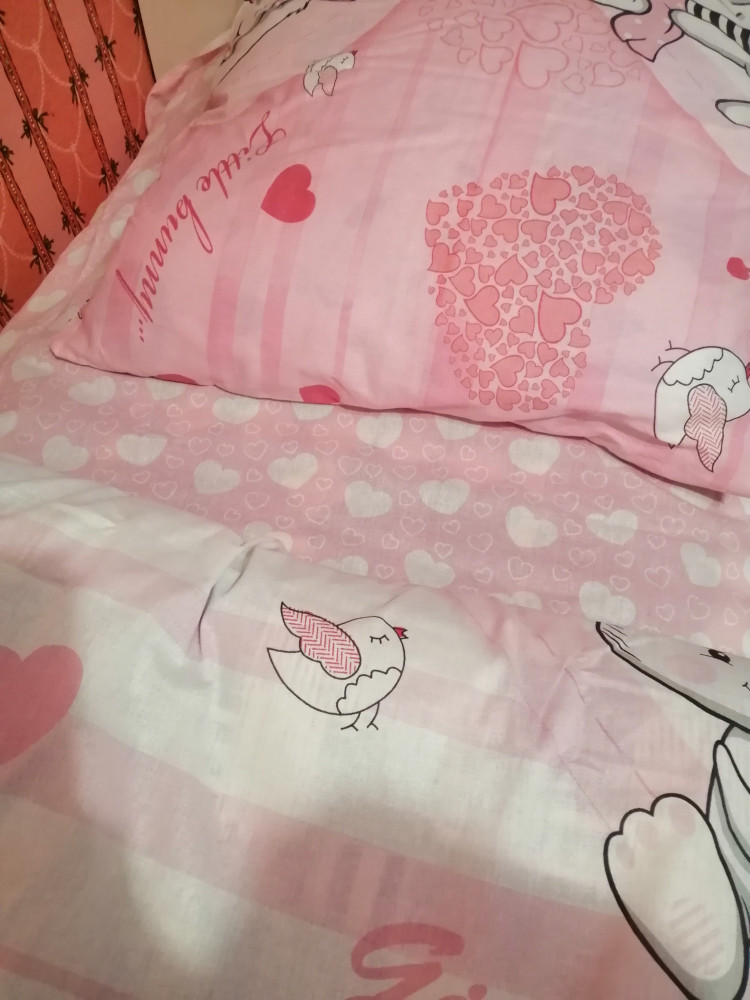 красивое постельное, простынь и наволочка в сердечках) внучке очень понравилось, мягкое